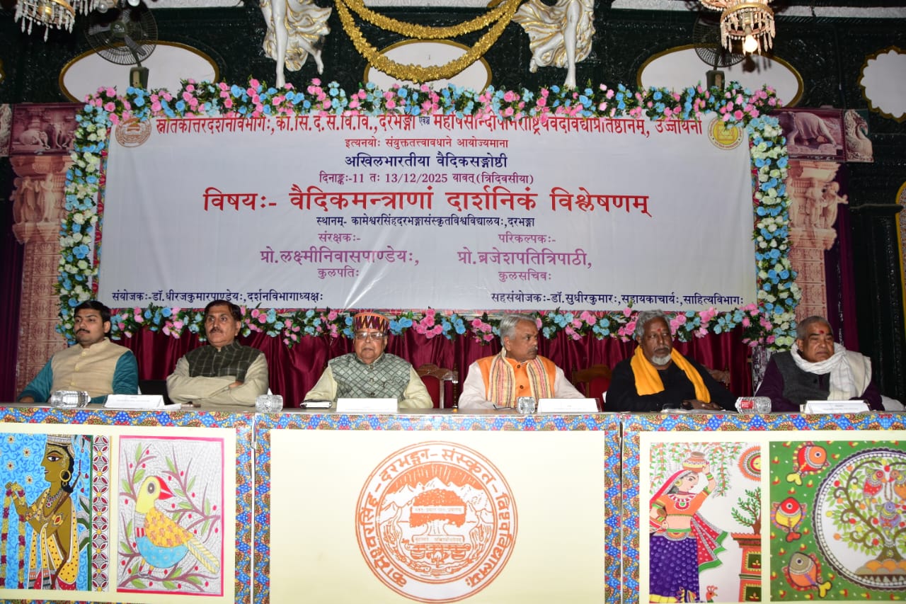 दरभंगा। कामेश्वर सिंह दरभंगा संस्कृत विश्वविद्यालय के स्नातकोत्तर दर्शन विभाग और महर्षि सांदीपनि वेद विद्यापीठ के संयुक्त तत्वावधान में ‘वैदिक मंत्रों के दार्शनिक विश्लेषण’ विषय पर आयोजित त्रिदिवसीय अखिल भारतीय वैदिक संगोष्ठी का आज सफलतापूर्वक समापन हो गया। देश के कोने-कोने से पधारे विद्वानों ने सात अलग-अलग सत्रों में वैदिक मंत्रों के व्यावहारिक पक्षों पर गहन चिंतन किया और उनकी प्रामाणिकता को अकाट्य तर्कों से सिद्ध किया।