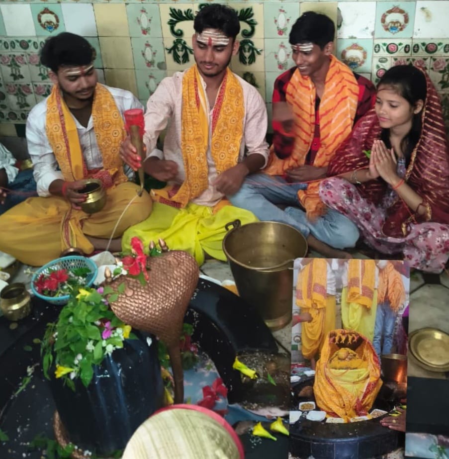 अनुष्ठान के दौरान सभी शिव भक्त कतारबद्ध होकर ‘हर-हर महादेव’ के जयकारे लगा रहे थे, जिससे पूरा मंदिर परिसर भक्तिमय हो गया। मंदिर और शिवलिंग को आकर्षक ढंग से सजाया गया था। अनुष्ठान के समापन पर ‘ओम नमः शिवाय’ के जाप के साथ भव्य महाआरती की गई, जिसमें भारी संख्या में परिजन और सगे-संबंधी उपस्थित रहे।
