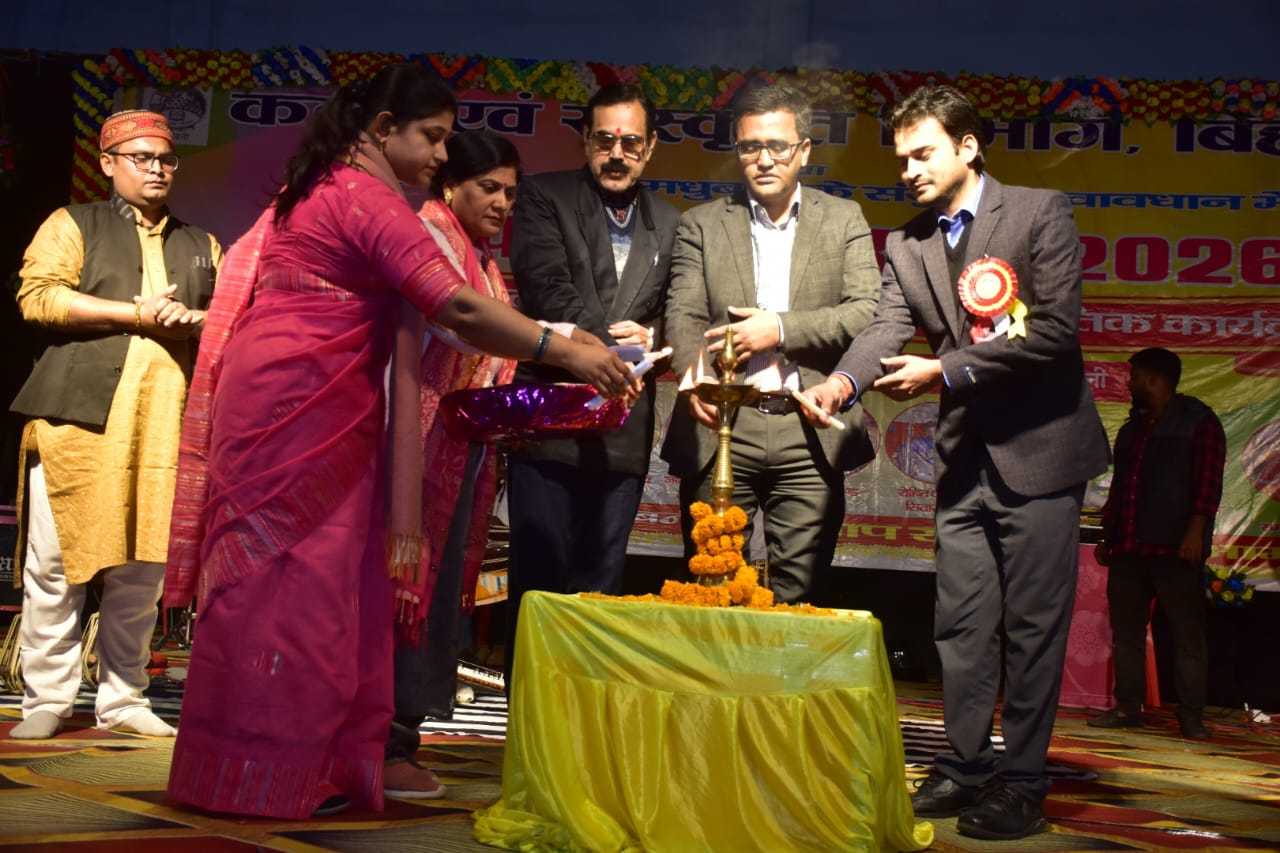 Basant Panchami Mahotsav 2026: जैसे फिजाओं में बसंत की आहट घुल रही है, वैसे ही मिथिला की धरती कला और संस्कृति के इंद्रधनुषी रंगों से सराबोर हो उठी है। शनिवार को मधुबनी के नगर भवन में कला एवं संस्कृति विभाग, बिहार तथा जिला प्रशासन, मधुबनी के संयुक्त तत्वावधान में बसंत पंचमी महोत्सव का भव्य शुभारंभ हुआ, जिसने स्थानीय कला-प्रेमियों के बीच उत्साह की एक नई लहर दौड़ा दी। कार्यक्रम का उद्घाटन अपर समाहर्ता मुकेश रंजन, डीपीआरओ परिमल कुमार एवं कला एवं संस्कृति पदाधिकारी नीतीश कुमार द्वारा संयुक्त रूप से दीप प्रज्वलित कर किया गया।इस अवसर पर अधिकारियों ने महोत्सव के आयोजन के महत्व पर प्रकाश डालते हुए कहा कि ऐसे कार्यक्रम न केवल हमारी सांस्कृतिक धरोहर को सहेजते हैं, बल्कि नई पीढ़ी को अपनी जड़ों से जुड़ने के लिए प्रेरित भी करते हैं। उद्घाटन समारोह के बाद सांस्कृतिक संध्या का आगाज हुआ, जिसमें लोक कलाकारों ने अपनी प्रस्तुतियों से सभी को मंत्रमुग्ध कर दिया। आप पढ़ रहे हैं देशज टाइम्स बिहार का N0.1।