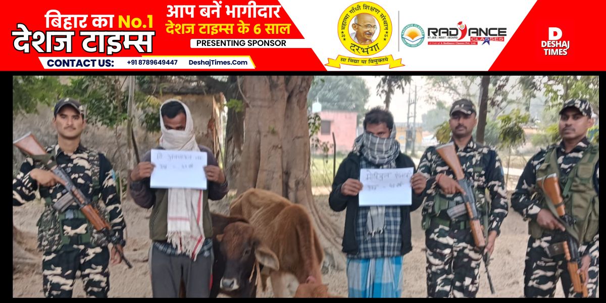 खुटौना। लौकहा बीओपी के एसएसबी जवानों ने भारत-नेपाल सीमा के स्तंभ संख्या 245 के भारतीय सीमा में गाय की तस्करी कर रहे दो तस्करों को दो गाय के साथ धर-दबोचा।