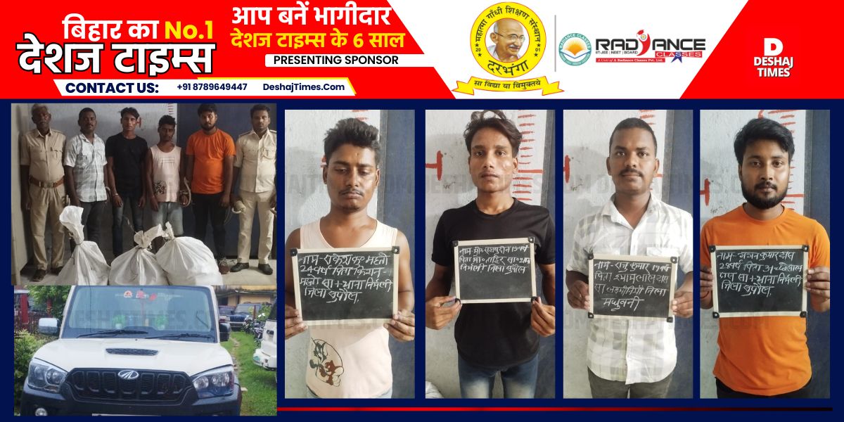 Madhubani News| अंधरामठ में स्कार्पियो पर लदकर ले रहे 159 लीटर शराब, चार तस्कर धराए | जहां, अंधरामठ थाना पुलिस की बड़ी कार्रवाई। स्कार्पियो पर लदे 159 लीटर शराब के साथ चार धंधेबाज गिरफ्तार। जहां,लौकही के अंधरामठ पुलिस के गश्ती दल ने मंगलवार की शाम गुप्त सूचना के आधार पर कार्रवाई (Four liquor smugglers arrested in Madhubani’s Andhramath) करते हुए स्थानीय थाना क्षेत्र के महथौर गांव स्थित तिलयुगा नदी के समीप से एक स्कार्पियो पर लदे 159 लीटर शराब के साथ चार धंधेबाज को पकड़ा।