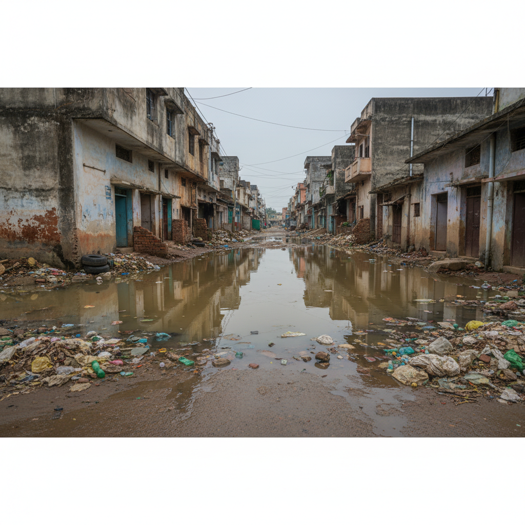 सड़कों पर पसरा कीचड़ और गंदगी