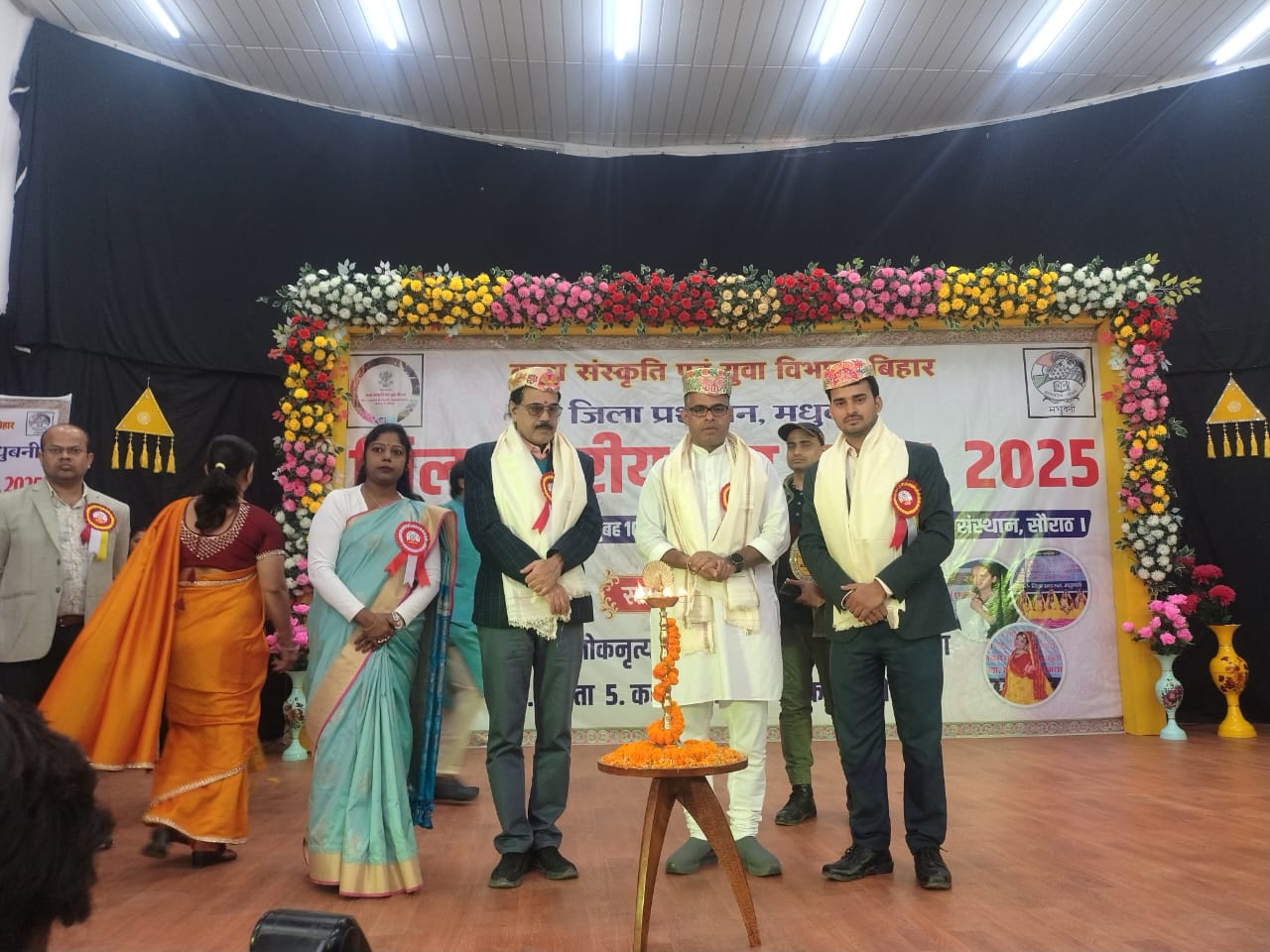 कला संस्कृति एवं युवा विभाग, बिहार और जिला प्रशासन, मधुबनी के संयुक्त तत्वावधान में बहुप्रतीक्षित जिला स्तरीय युवा उत्सव, 2025 का रविवार को विधिवत शुभारंभ हो गया। मधुबनी के सौराठ स्थित मिथिला चित्रकला संस्थान में आयोजित इस भव्य कार्यक्रम का उद्घाटन मधुबनी के माननीय विधायक, श्री आनंद माधव ने दीप प्रज्वलित कर किया। इस अवसर पर उनके साथ उप-निदेशक-सह-जिला जनसंपर्क पदाधिकारी, परिमल कुमार और जिला कला एवं संस्कृति पदाधिकारी, नीतीश कुमार भी मौजूद थे।
