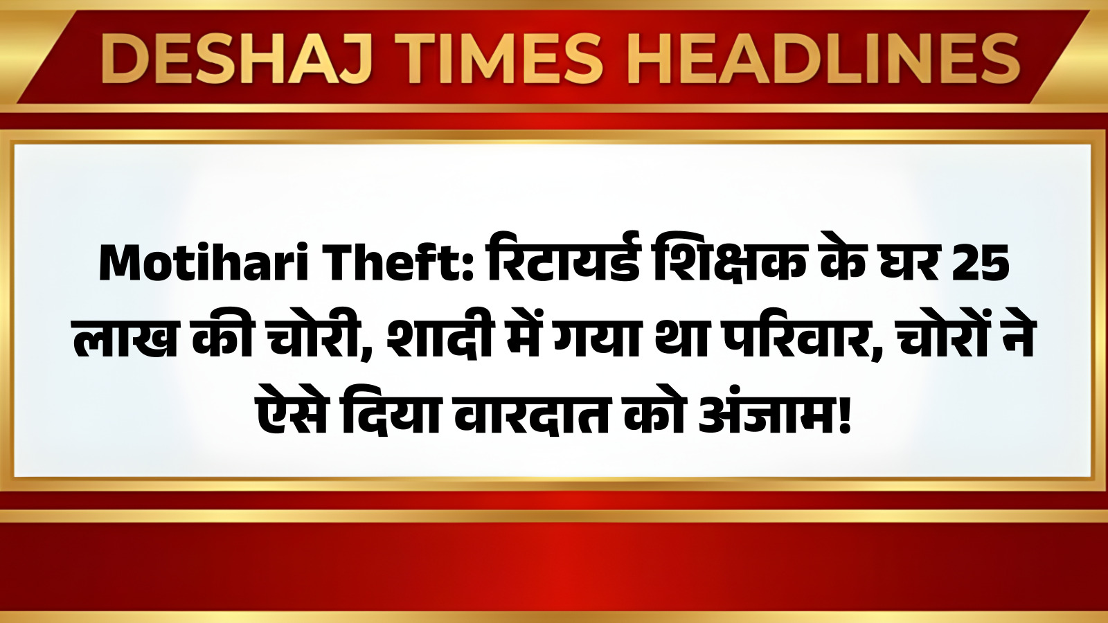 Motihari Theft: मोतिहारी से एक चौंकाने वाली खबर सामने आई है, जहां चोरों ने एक रिटायर्ड शिक्षक के घर को निशाना बनाया और लाखों के गहनों पर हाथ साफ कर दिया। परिवार शादी में क्या गया, चोरों ने सूने घर का फायदा उठाकर लाखों के जेवर उड़ा लिए। ये पूरी घटना पताही थाना क्षेत्र की है।