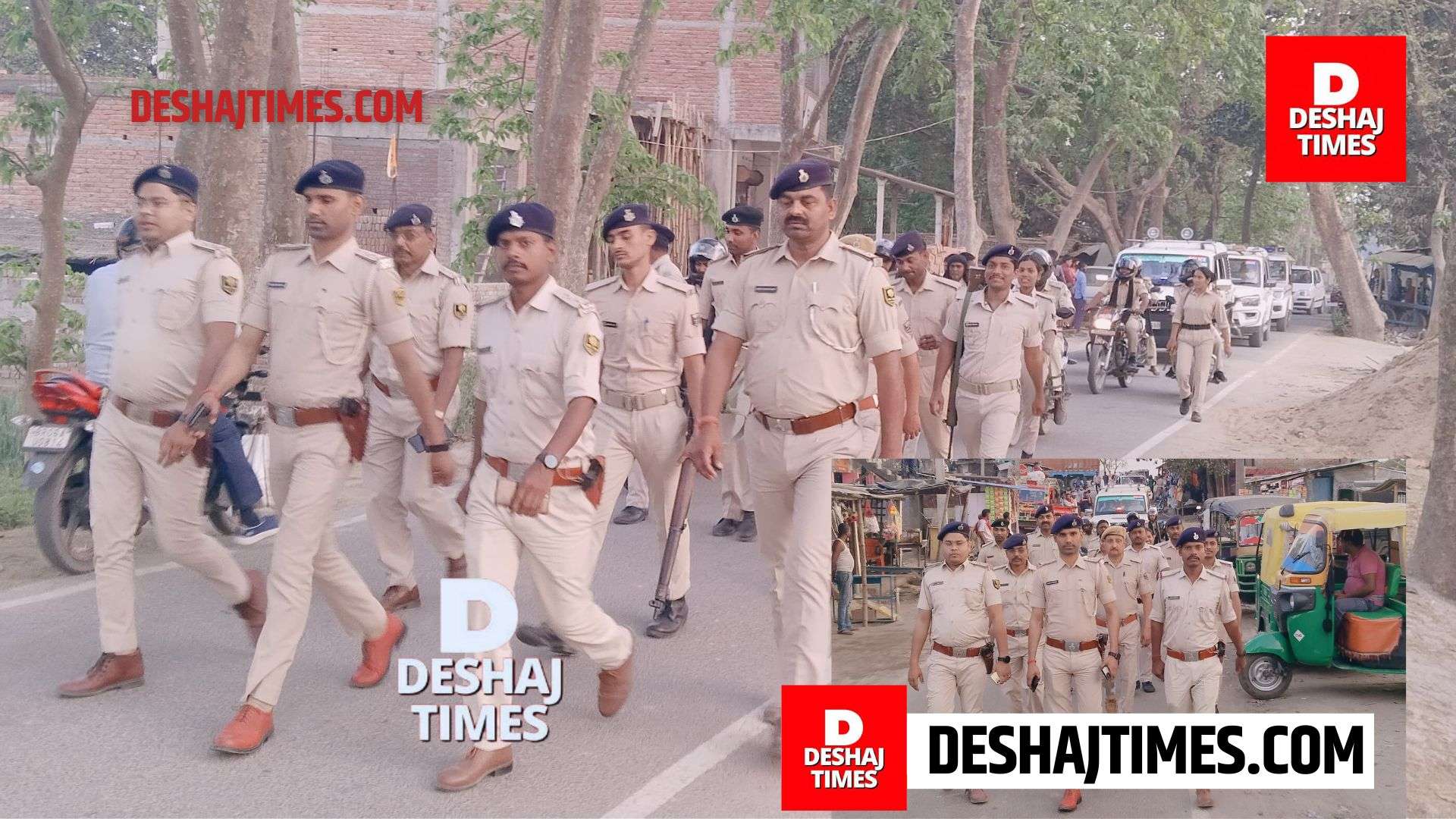 Muzaffarpur News | थानाध्यक्ष पुरषोत्तम यादव के संयुक्त नेतृत्व में शनिवार की शाम फ्लैग मार्च