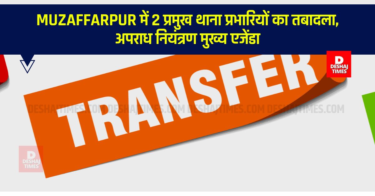 दीपक कुमार, मुजफ्फरपुर | जिले में दो प्रमुख थानों के प्रभारी बदले गए हैं। नए आदेश के तहत—