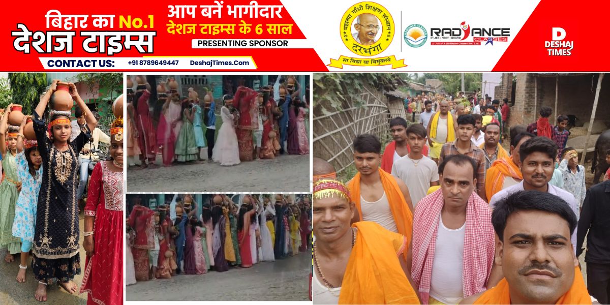 पारंपरिक रूप से नवरात्र को लेकर निकले कलश यात्रा का दृश्य अलौकिक छटा बिखेरता दिखा। कलश यात्रा जिस-जिस रास्ते से गुजरी उन रास्तों पर भक्तों के जयकारे से माहौल भक्तिमय रहा। घर मे रह रही महिलाएं व बच्चे कलश यात्रा को देखने बाहर खड़े नजर आए। सिर पर कलश मुख में मां भगवती का जयकारा, महिलाएं व युवतियों ने मौके पर पूरे गांव का भ्रमण कर दुर्गा स्थान पहुंची।