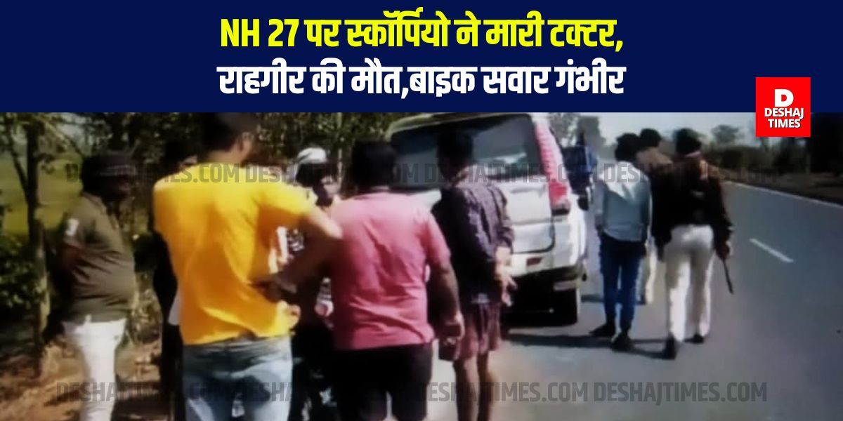 NH 27 पर स्कॉर्पियो ने मारी टक्टर,राहगीर की मौत,बाइक सवार गंभीर
