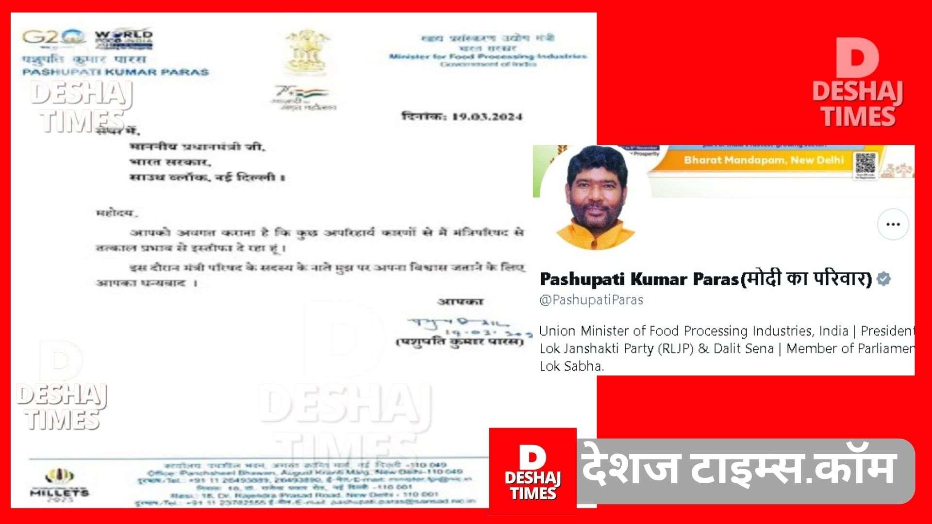 Bihar Politics News | इस्तीफा देते हुए पारस ने कहा है कि