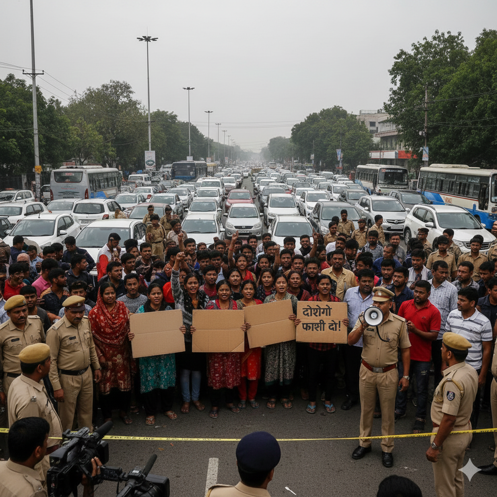 बच्ची की मौत से व्यथित ग्रामीणों ने इंसाफ के लिए प्रदर्शन करना शुरू कर दिया। देखते ही देखते भीड़ ने मुख्य सड़क को जाम कर दिया, जिससे यातायात पूरी तरह से बाधित हो गया। प्रदर्शनकारी हाथों में तख्तियां लिए हुए थे और लगातार नारेबाजी कर रहे थे। उनकी मांग थी कि दोषियों को जल्द से जल्द गिरफ्तार किया जाए और उन्हें कड़ी से कड़ी सजा मिले। प्रदर्शन के कारण इलाके में तनाव का माहौल बना हुआ है।