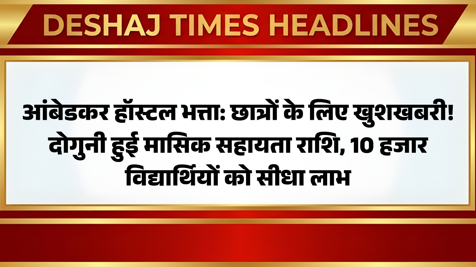राज्य सरकार ने डॉ. भीमराव अंबेडकर कल्याण छात्रावासों में रहने वाले छात्र-छात्राओं के लिए मिलने वाली मासिक सहायता राशि को 1,000 रुपये से बढ़ाकर 2,000 रुपये प्रति माह कर दिया है। कैबिनेट की मंजूरी के बाद यह फैसला लागू हो चुका है और इसका सीधा असर हजारों छात्रों पर पड़ेगा। राज्य में कुल 139 अंबेडकर कल्याण छात्रावास संचालित हैं, जिनमें अनुसूचित जाति और अनुसूचित जनजाति वर्ग के विद्यार्थी रहकर शिक्षा प्राप्त करते हैं। सरकार के अनुमान के मुताबिक, 10 हजार से अधिक छात्र-छात्राओं को इस बढ़ी हुई राशि का लाभ मिलेगा। यह नई व्यवस्था अप्रैल महीने से ही प्रभावी हो गई है। आप पढ़ रहे हैं देशज टाइम्स बिहार का No.1।