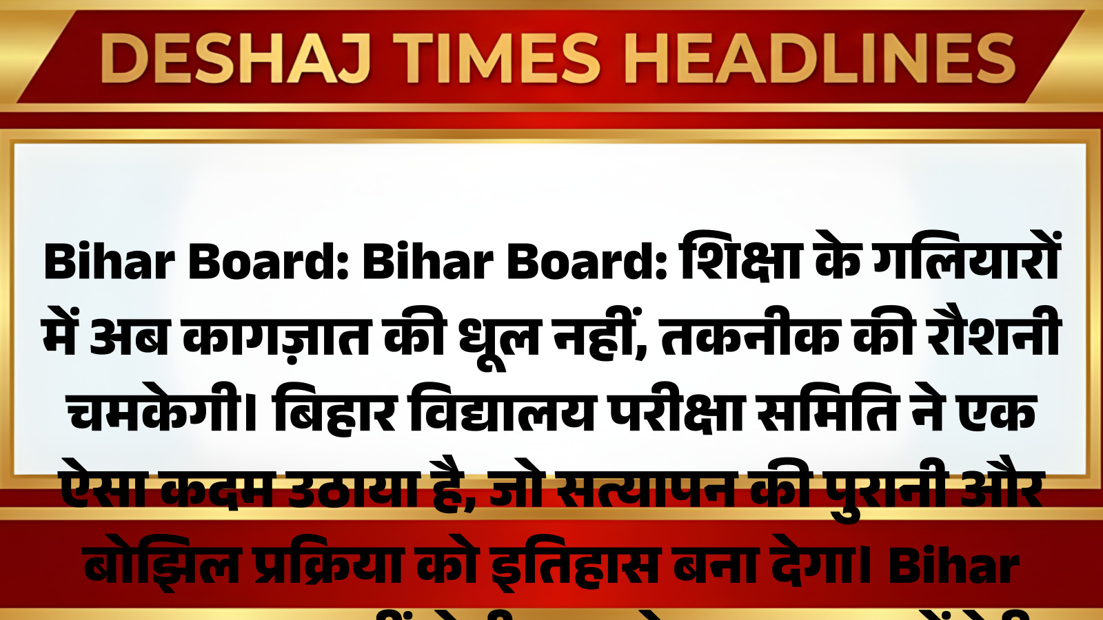 बिहार विद्यालय परीक्षा समिति (BSEB) ने शिक्षा प्रशासन को तकनीकी रूप से सशक्त बनाने की दिशा में एक ऐतिहासिक पहल की है। बोर्ड ने दस्तावेज़ सत्यापन व्यवस्था को पूरी तरह डिजिटल करने का महत्वपूर्ण निर्णय लिया है। यह एक ऐसा कदम है जो शिक्षा प्रणाली में पारदर्शिता और गति लाने का काम करेगा।