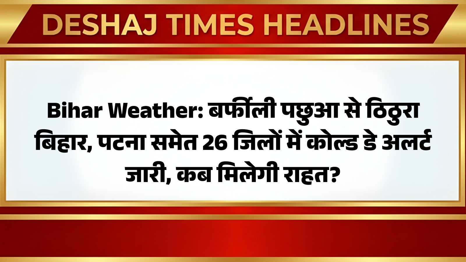 यह स्थिति अगले कुछ दिनों तक बनी रहने की संभावना है। बर्फीली हवाएं लोगों को घरों में कैद रहने पर विवश कर रही हैं, जिससे बाजार और सार्वजनिक स्थानों पर भी सन्नाटा पसरा हुआ है। देश की हर बड़ी ख़बर पढ़ने के लिए यहां क्लिक करें: https://deshajtimes.com/news/national/ आप पढ़ रहे हैं देशज टाइम्स बिहार का N0.1।