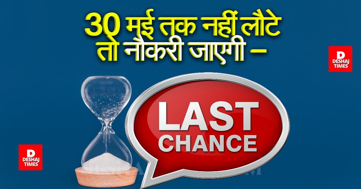 जानकारी के अनुसार, 30 मई शाम 5 बजे तक योगदान पर लाभ यह होगा कि हड़ताल अवधि को उपार्जित अवकाश माना जाएगा। कर्मचारी की सेवा नियमित मानी जाएगी। देरी से लौटने पर सख्ती यह बरती जाएगी कि “नो वर्क, नो पे” नीति के अनुसार वेतन कटौती होगी। सेवा नियमितता पर निर्णय बाद में लिया जाएगा।अनुशासनात्मक कार्रवाई यह होगी कि लैपटॉप न लौटाने पर लोक मांग वसूली अधिनियम के तहत कानूनी कार्रवाई शुरू होगी। अनुशासनात्मक कार्रवाई भी तत्काल प्रभाव से की जाएगी।