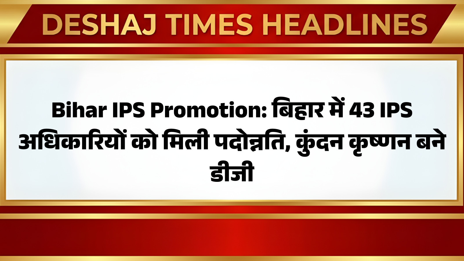 बिहार के गृह विभाग ने पुलिस महकमे में एक बड़ा फैसला लेते हुए कुल 43 आईपीएस अधिकारियों को पदोन्नति दी है। इस निर्णय से राज्य के पुलिस बल में नई गति आने की उम्मीद है। जिन अधिकारियों को तरक्की मिली है, उनमें एडीजी कुंदन कृष्णन का नाम सबसे ऊपर है, जिन्हें डीजी कोटि में पदोन्नत किया गया है। यह फैसला पुलिस बल के मनोबल को बढ़ाने और प्रशासनिक दक्षता में सुधार लाने की दिशा में एक महत्वपूर्ण कदम है। आप पढ़ रहे हैं देशज टाइम्स बिहार का N0.1।
