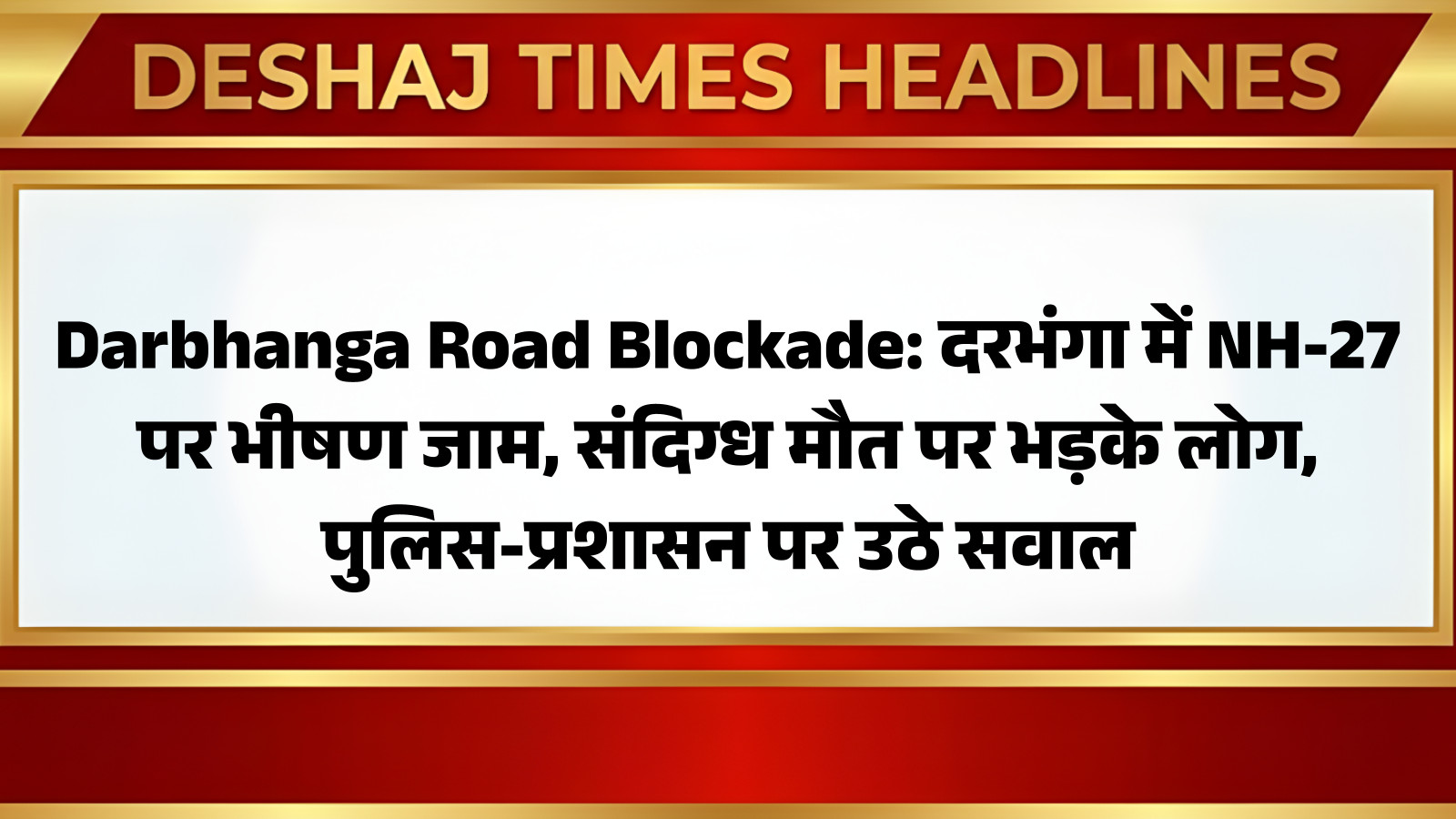 Darbhanga Road Blockade: जब इंसाफ की गुहार सड़कों पर उतर आती है, तब व्यवस्था के माथे पर चिंता की लकीरें गहरी हो जाती हैं। बुधवार को दरभंगा जिले में कुछ ऐसा ही नजारा देखने को मिला, जहां एक संदिग्ध मौत के बाद आक्रोशित परिजनों ने शव के साथ NH-27 को जाम कर दिया। करीब दो घंटे तक चला यह प्रदर्शन न सिर्फ यात्रियों के लिए मुसीबत का सबब बना, बल्कि इसने बिहार की कानून-व्यवस्था और प्रशासनिक सक्रियता पर भी गंभीर सवाल खड़े कर दिए।