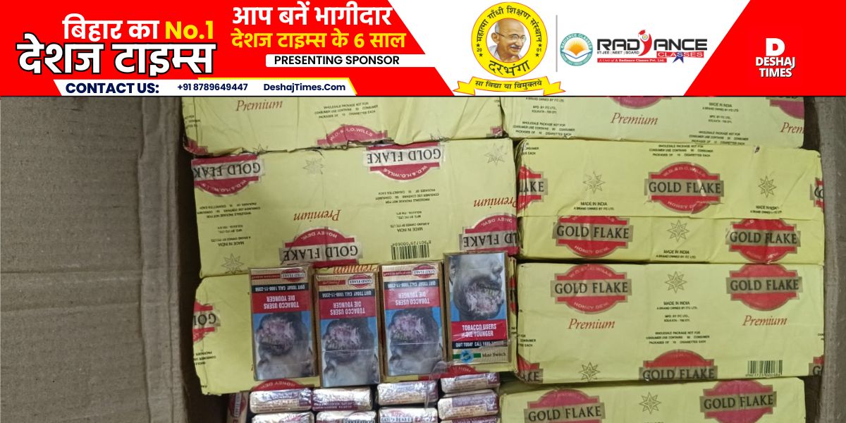 आधार पर 28.सितंबर 2024 को नकरडेरी, अदापुर रक्सौल रोड के समीप एक पैसेंजर बस की छत से चार प्लास्टिक बैग में रखे 95000 स्टीक गोल्ड फ्लैक सिगरेट (9500 पॉकेट) को जब्त किया गया था। जिसका कुल अनुमानित मूल्य नौ लाख रूपए है।