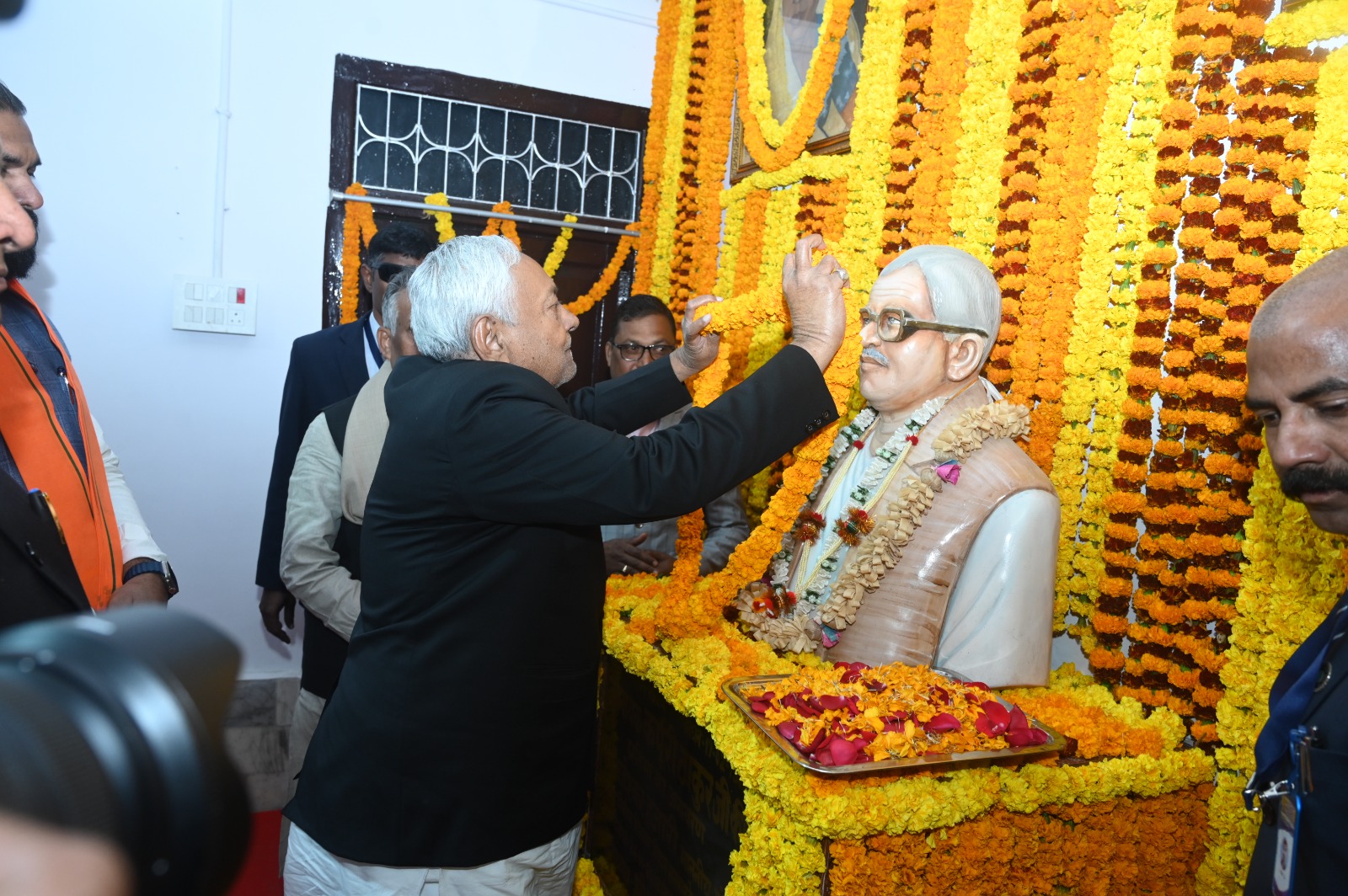 इसके उपरांत, देशरत्न मार्ग स्थित जननायक कर्पूरी ठाकुर स्मृति संग्रहालय में कला, संस्कृति एवं युवा विभाग द्वारा एक और समारोह का आयोजन किया गया। यहां भी मुख्यमंत्री श्री नीतीश कुमार, बिहार विधानसभा अध्यक्ष डॉ० प्रेम कुमार, बिहार विधानसभा के उपाध्यक्ष श्री नरेंद्र नारायण यादव, जल संसाधन सह संसदीय कार्य मंत्री श्री विजय कुमार चौधरी, ऊर्जा मंत्री श्री बिजेंद्र प्रसाद यादव, ग्रामीण विकास मंत्री श्री श्रवण कुमार, कृषि मंत्री श्री रामकृपाल यादव, पर्यटन मंत्री श्री अरुण शंकर प्रसाद, विधायक श्री श्याम रजक, नागरिक परिषद के महासचिव श्री अरविंद कुमार सिंह, पूर्व सदस्य खाद्य आयोग श्री नंदकिशोर कुशवाहा, जदयू महासचिव श्री ओम प्रकाश सिंह सेतू सहित अन्य जनप्रतिनिधियों और गणमान्य व्यक्तियों ने भारत रत्न जननायक कर्पूरी ठाकुर की प्रतिमा पर पुष्प अर्पित कर अपनी श्रद्धांजलि दी। इस दौरान सभी ने उनके आदर्शों को अपने जीवन में उतारने का संकल्प लिया। आप पढ़ रहे हैं देशज टाइम्स बिहार का N0.1।