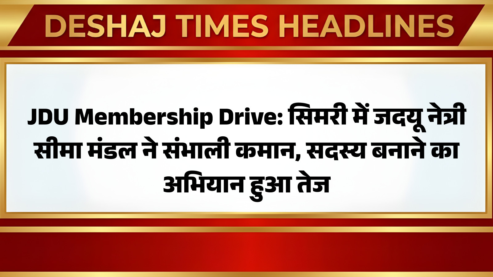 जदयू का यह अभियान आगामी चुनावों को ध्यान में रखते हुए महत्वपूर्ण माना जा रहा है। पार्टी जमीनी स्तर पर कार्यकर्ताओं को जोड़कर अपनी पकड़ मजबूत करना चाहती है। सिमरी में आयोजित इस कार्यक्रम में बड़ी संख्या में स्थानीय लोग उपस्थित हुए और उन्होंने पार्टी की नीतियों और सिद्धांतों पर भरोसा जताते हुए सदस्यता ग्रहण की। सीमा मंडल ने सभी नए सदस्यों का स्वागत किया और उन्हें पार्टी के लक्ष्यों के प्रति समर्पित रहने का आह्वान किया। आप पढ़ रहे हैं देशज टाइम्स बिहार का N0.1।