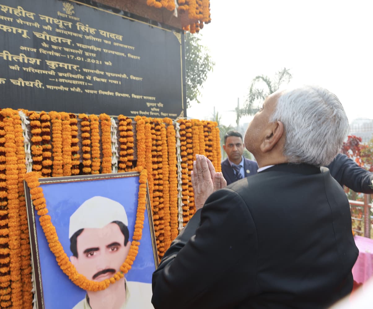 मुख्यमंत्री नीतीश कुमार ने शनिवार को अपनी ‘समृद्धि यात्रा’ के दूसरे चरण में पटना जिले के बख्तियारपुर स्थित नया बाईपास पर बने राघोपुर तिराहा पर पहुंचकर सर्वप्रथम शहीद नाथुन सिंह यादव की प्रतिमा पर माल्यार्पण किया। इस दौरान उन्होंने स्वतंत्रता सेनानियों के योगदान को याद किया और कहा कि उनके बलिदानों को कभी भुलाया नहीं जा सकता। राज्य सरकार शहीदों और स्वतंत्रता सेनानियों के परिजनों का सम्मान करने के लिए प्रतिबद्ध है। यह कार्यक्रम राजकीय सम्मान के साथ आयोजित किया गया, जिसमें जिले के प्रमुख स्वतंत्रता सेनानियों की प्रतिमाओं पर मुख्यमंत्री ने पुष्प अर्पित कर उन्हें भावभीनी श्रद्धांजलि दी। आप पढ़ रहे हैं देशज टाइम्स बिहार का N0.1।