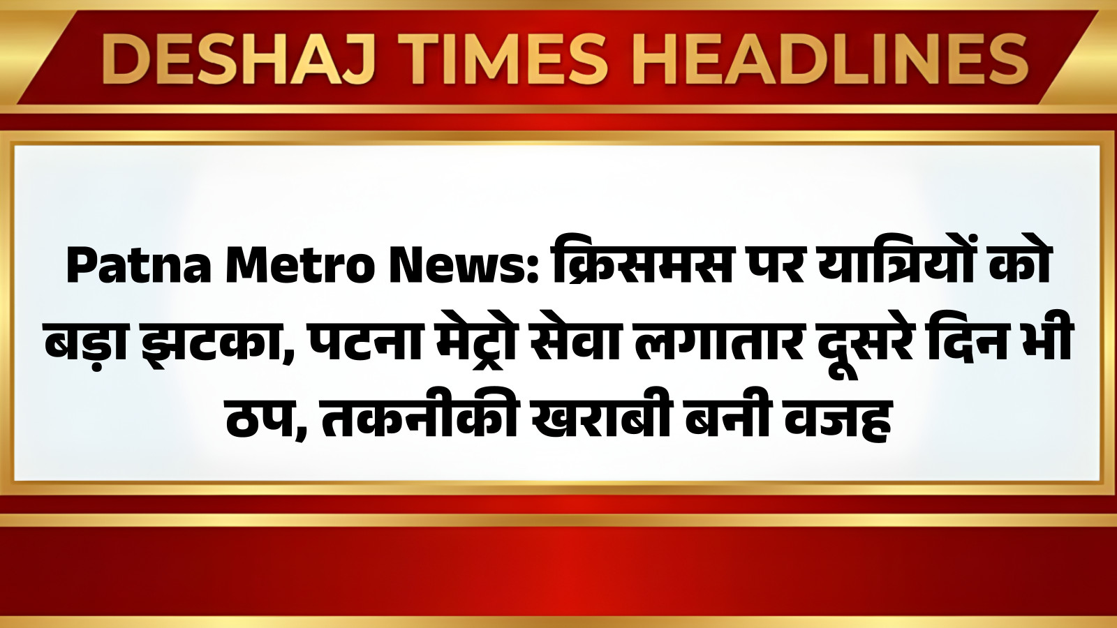 Patna Metro News: राजधानी पटना में क्रिसमस का त्योहार जहां एक ओर लोगों के लिए खुशियां लेकर आया, वहीं दूसरी ओर मेट्रो यात्रियों को भारी परेशानी का सामना करना पड़ा। उत्सव और खरीदारी के इस माहौल में जब शहर की सड़कें भीड़ से गुलजार थीं, मेट्रो सेवा का ठप हो जाना एक बड़ा झटका साबित हुआ। तकनीकी खामी के चलते, मेट्रो को दूसरे दिन भी अपनी सेवाएं निलंबित रखनी पड़ीं, जिससे दैनिक यात्रियों से लेकर त्योहार पर यात्रा करने वालों तक सभी को मुसीबतों का सामना करना पड़ा।