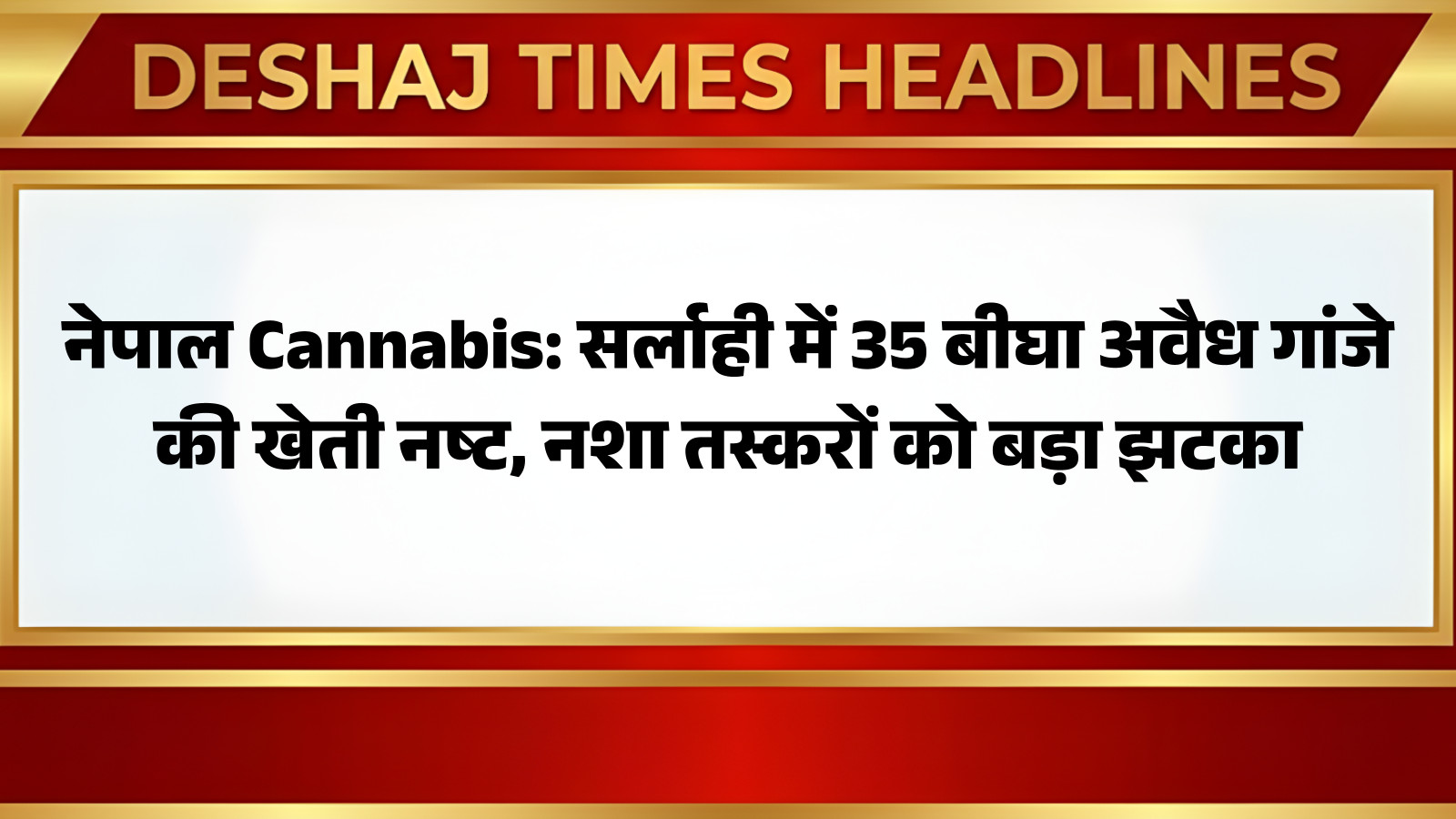 नेपाल के सर्लाही जिले में नशीले पदार्थों के खिलाफ एक बड़ी कार्रवाई को अंजाम दिया गया है। पुलिस और सशस्त्र पुलिस बल (APF) की एक संयुक्त टीम ने लालबंदी नगरपालिका के चुरे इलाके में विभिन्न स्थानों पर लगभग 35 बीघा जमीन पर की जा रही अवैध गांजे की खेती को पूरी तरह से नष्ट कर दिया है। इस कार्रवाई से इलाके में सक्रिय गांजा तस्करों और अवैध कारोबारियों को बड़ा झटका लगा है।