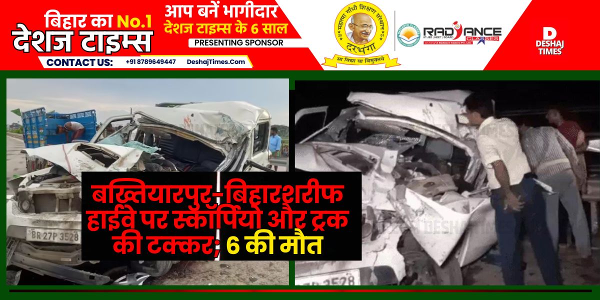 सब लोग हसी खुशी से जा रहे थे कि बाढ़ बख्तियारपुर फोरलेन समीप स्कार्पियो ड्राइवर जो 100 किलोमिटर प्रति घंटे की स्पीड से गाड़ी चला रहा था। अचानक स्कार्पियो ड्राइवर को नींद लग गई। गाड़ी संतुलन खोकर खड़ी हाइवा से टकरा गई। इससे स्कार्पियो के परखच्चे उड़ गए। इसमें, रिशु कुमारी, नीरज कुमार, पार्वती देवी,भगतिनी, कमला देवी, निर्मला देवी की मौत हो गई। जबकि, घायलों में इंदु देवी निवासी नरहट, नीतू कुमारी निवासी गिरियक, कौशल कुमार, किटू कुमार, मीना देवी और रीता देवी शामिल हैं।
