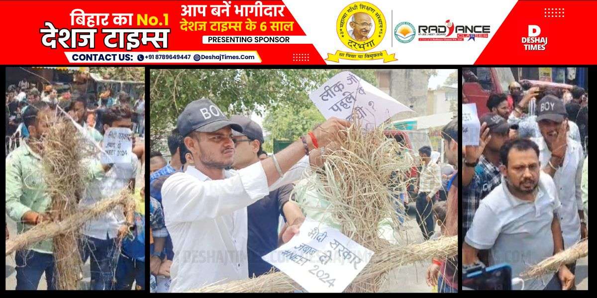 प्रदर्शन करते सड़कों पर उतरे। भारी विरोध जताया। सड़कों पर आगजनी कर सड़क को जाम कर दिया। सरकार, एनटीए के खिलाफ नारेबाजी करते छात्र दिनकर गोलंबर पर शिक्षा मंत्री और एनटीए का पुतला फूंका।आग जनी करते हुए जमकर बवाल मचाया। इससे, यातायात बाधित रहा।