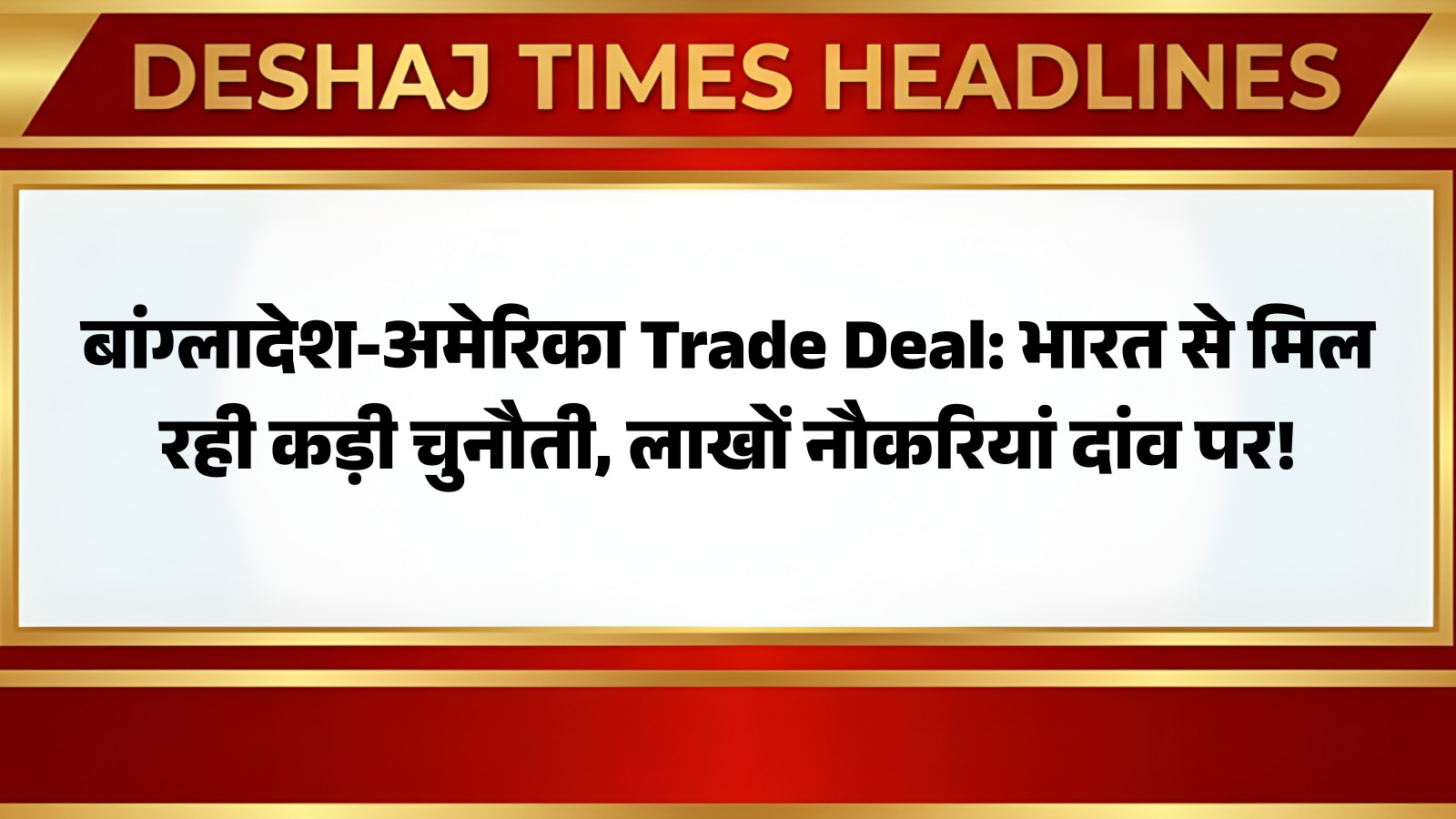 भारत-अमेरिका ट्रेड एग्रीमेंट के बाद बांग्लादेश को अमेरिकी बाजारों में अपनी हिस्सेदारी खोने का डर सता रहा है। हाल ही में, भारत के साथ हुई डील के तहत अमेरिका में भारतीय सामानों के आयात पर टैरिफ को 25 प्रतिशत से घटाकर 18 प्रतिशत कर दिया गया है। ऐसे में, बांग्लादेश जो मुख्य रूप से रेडीमेड गारमेंट एक्सपोर्ट पर निर्भर करता है (जो उसके कुल अमेरिकी निर्यात का लगभग 90 प्रतिशत है), उसे अपनी आर्थिक स्थिरता को लेकर चिंता है। आप पढ़ रहे हैं देशज टाइम्स बिहार का N0.1।