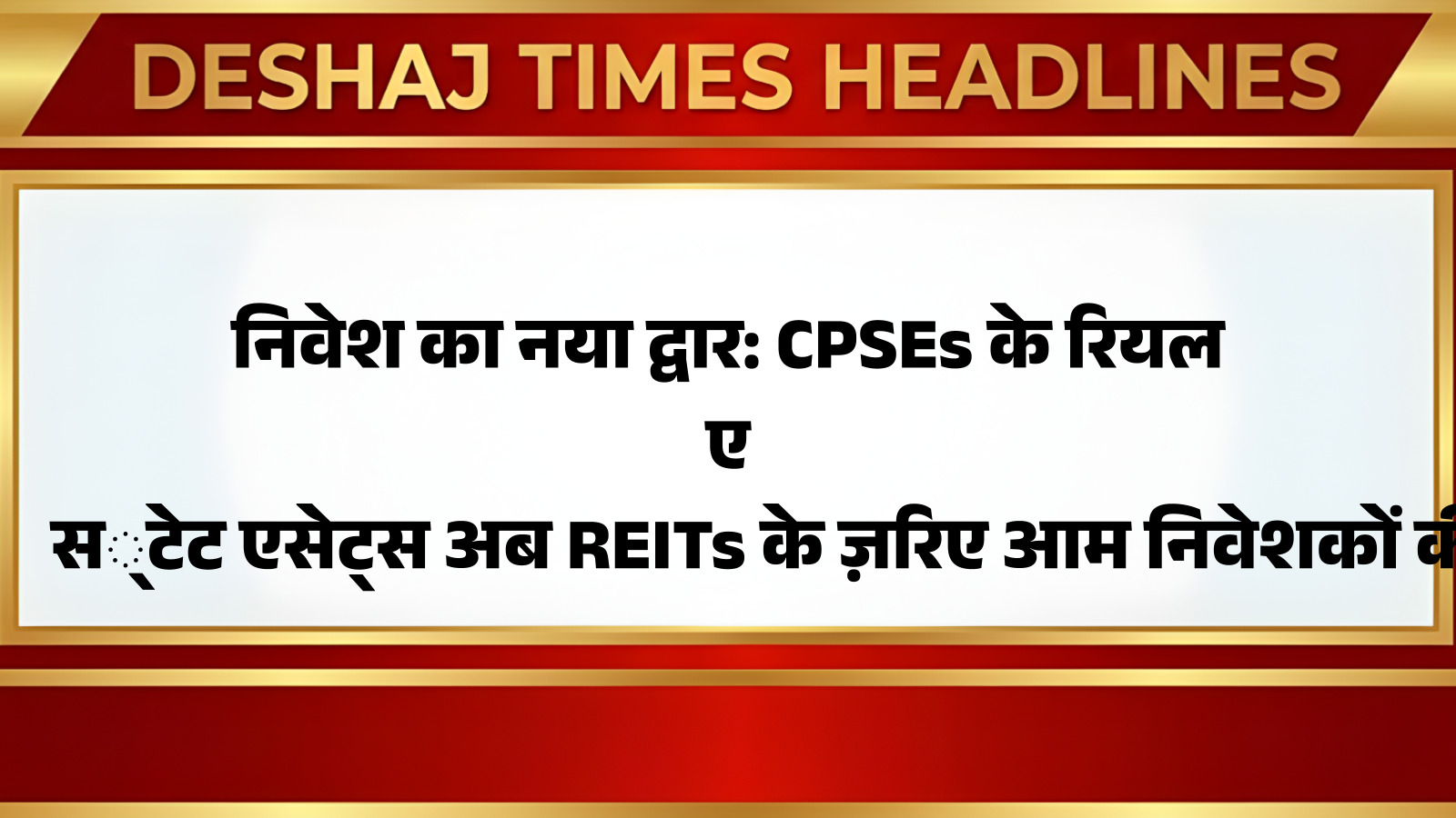 # निवेश का नया द्वार: CPSEs के रियल एस्टेट एसेट्स अब REITs के ज़रिए आम निवेशकों की पहुंच में