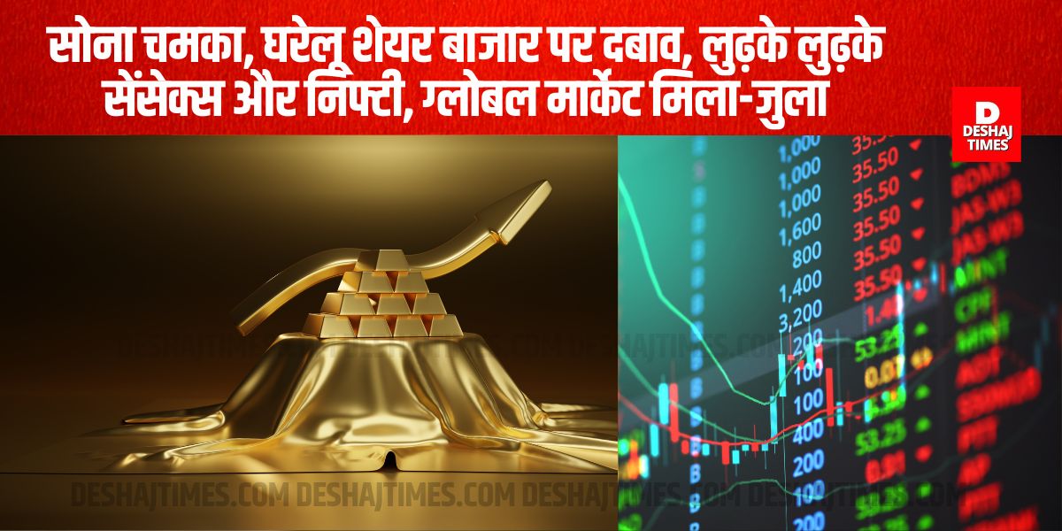 सोने में रिकॉर्ड तेजी, शेयर बाजार पर दबाव, सेंसेक्स-निफ्टी लुढ़के