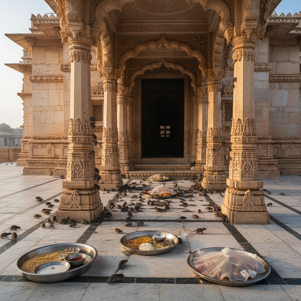 बीकानेर, राजस्थान: भारत विविध संस्कृतियों और अनोखी मान्यताओं का देश है। यहाँ हर कोने में ऐसे मंदिर मौजूद हैं, जिनकी परंपराएं और कथाएं हैरान कर देने वाली हैं। ऐसी ही एक अद्भुत जगह है राजस्थान के बीकानेर में स्थित करणी माता का मंदिर, जिसे ‘चूहों वाला मंदिर’ के नाम से भी जाना जाता है। इस मंदिर की सबसे खास बात यह है कि यहाँ हज़ारों की संख्या में मौजूद चूहों को इंसानों से भी ज़्यादा अहमियत दी जाती है।