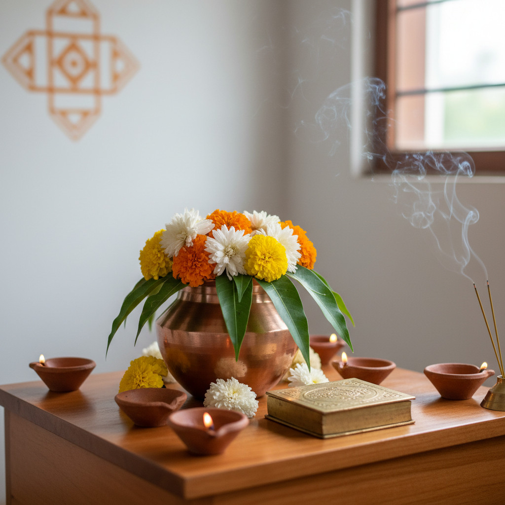 - पूजा स्थल पर आसन बिछाकर पूर्व दिशा की ओर मुख करके बैठें।