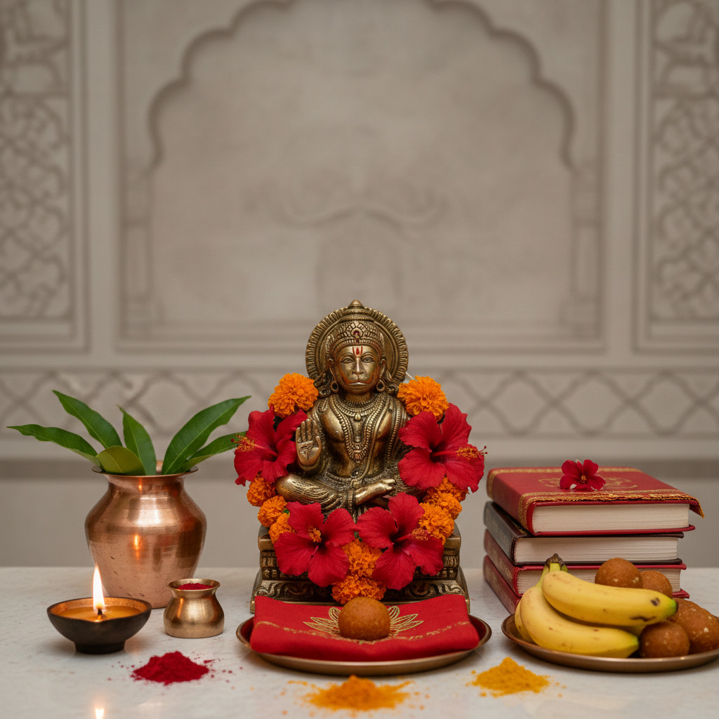 - उन्हें लाल पुष्प, सिंदूर, चमेली का तेल, धूप, दीप, नैवेद्य (बूंदी के लड्डू या गुड़-चना) अर्पित करें।