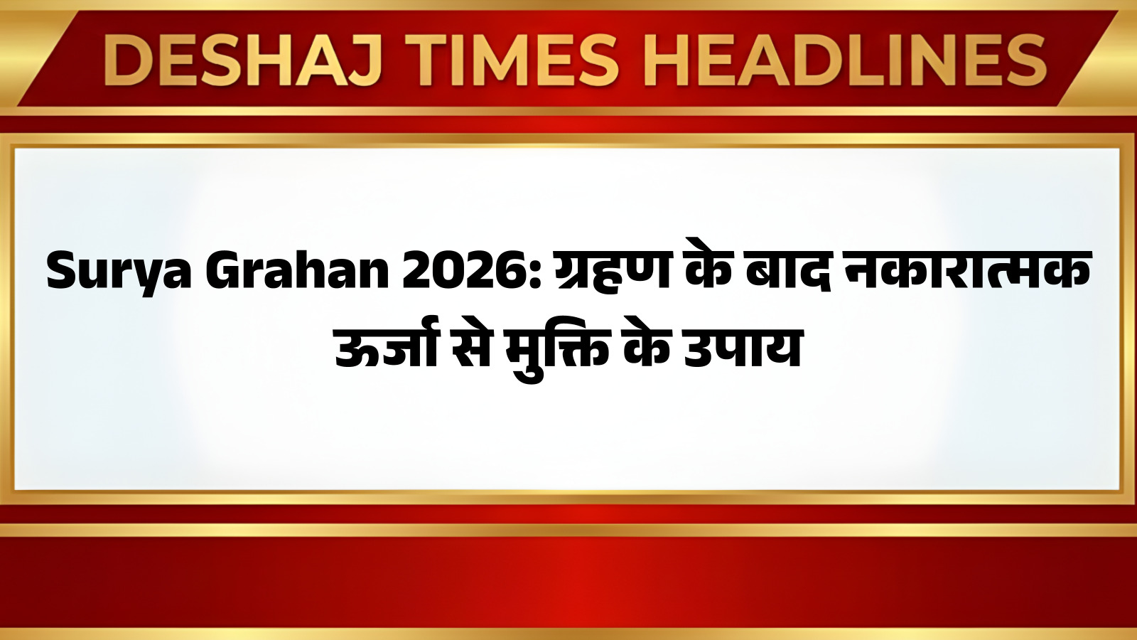 Surya Grahan 2026: जब प्रकृति अपने अद्भुत खगोलीय नज़ारों से हमें विस्मित करती है, तो कई बार कुछ विशेष ऊर्जाएँ भी उत्पन्न होती हैं। इन्हीं में से एक महत्वपूर्ण घटना है सूर्य ग्रहण, जिसका हिन्दू धर्म और ज्योतिष में गहरा महत्व है। ग्रहण काल को संवेदनशील माना जाता है और इसके समाप्त होने के बाद वातावरण में फैली नकारात्मक ऊर्जा को दूर करना अत्यंत आवश्यक हो जाता है। यह नकारात्मकता हमारे मानसिक और शारीरिक स्वास्थ्य पर विपरीत प्रभाव डाल सकती है। अतः, सूर्य ग्रहण के पश्चात् घर और स्वयं का शुद्धिकरण अत्यंत आवश्यक माना जाता है। इस आलेख में, आप पढ़ेंगे सूर्य ग्रहण समाप्त होने के बाद घर-परिवार से नकारात्मक ऊर्जा को दूर करने और सकारात्मकता का संचार करने के कुछ सरल एवं प्रभावी उपाय।