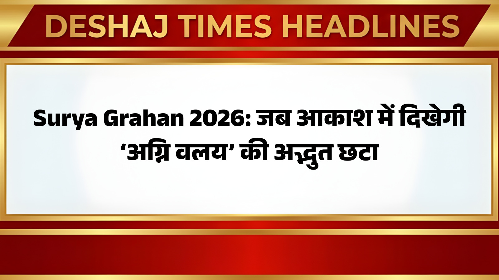 ज्योतिष शास्त्र में सूर्य ग्रहण को एक महत्वपूर्ण घटना माना जाता है, जो पृथ्वी पर गहरे प्रभाव डालती है। वर्ष 2026 में लगने वाला Surya Grahan 2026 ‘रिंग ऑफ फायर’ के रूप में दिखाई देगा, जो एक अद्भुत और मनमोहक दृश्य होगा। इस ग्रहण का भारत पर क्या प्रभाव पड़ेगा, क्या सूतक काल मान्य होगा, और दुनिया के किन हिस्सों में यह स्वर्णिम अंगूठी दिखाई देगी, इन सभी गूढ़ जानकारियों के लिए आप पढ़ रहे हैं देशज टाइम्स बिहार का N0.1। यह लेख आपको इस खगोलीय घटना के आध्यात्मिक और वैज्ञानिक पहलुओं से अवगत कराएगा।