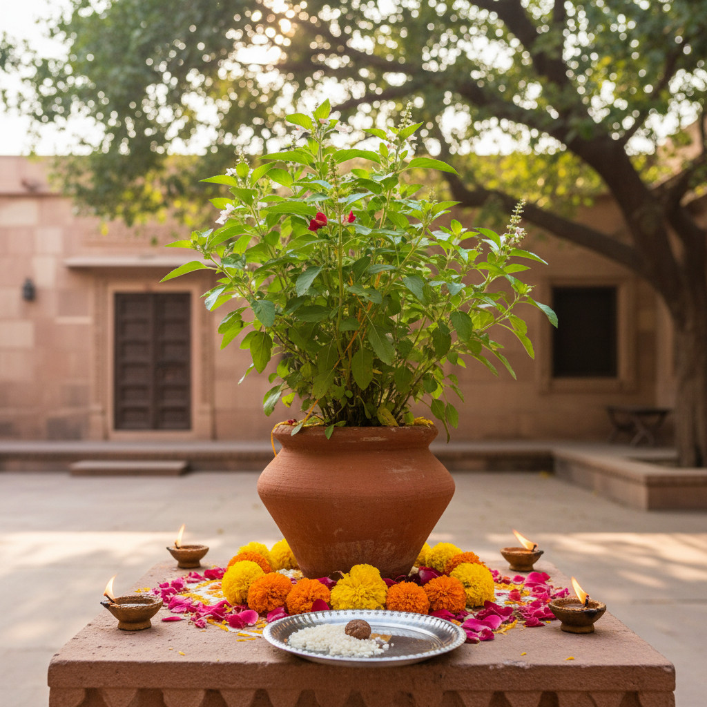 हिंदू धर्म ग्रंथों के अनुसार, तुलसी को भगवान विष्णु की पत्नी वृंदा का रूप माना गया है। भगवान शालिग्राम से उनके विवाह की कथा अत्यंत प्रचलित है, जिसे तुलसी विवाह के रूप में भी मनाया जाता है। तुलसी का नियमित पूजन करने से मां लक्ष्मी प्रसन्न होती हैं और घर में धन-धान्य की वृद्धि होती है। यह परिवार को रोग-दोष से मुक्त कर सुखमय जीवन प्रदान करती हैं। तुलसी के पत्तों का उपयोग धार्मिक अनुष्ठानों और औषधीय प्रयोगों में भी महत्वपूर्ण है।