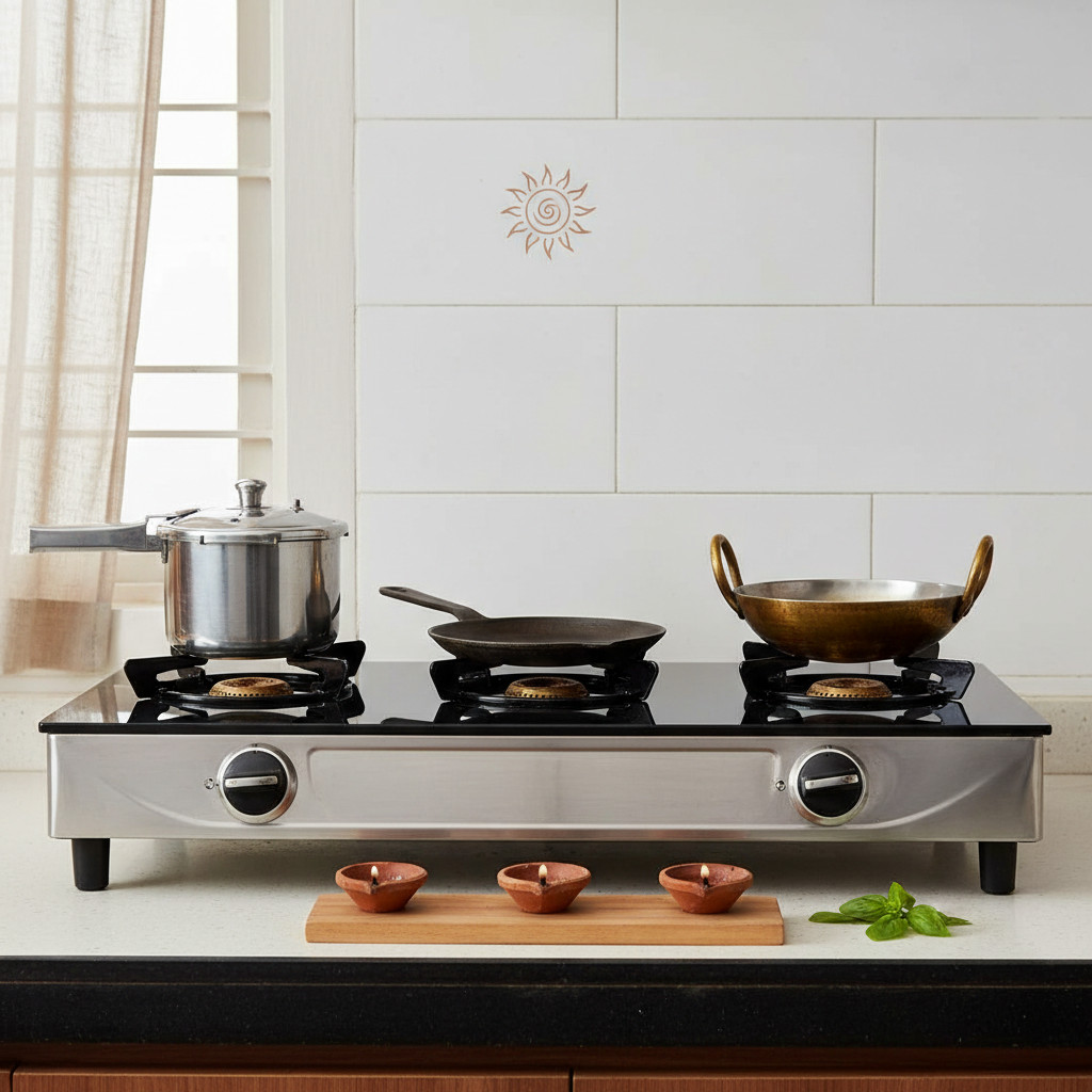 तीन बर्नर वाले गैस चूल्हे का वास्तु प्रभाव और चुनौतियां