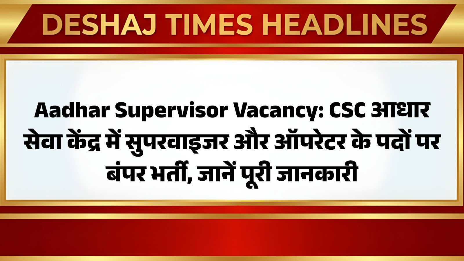 Aadhar Supervisor Vacancy: CSC आधार सेवा केंद्र में सुपरवाइजर और ऑपरेटर के पदों पर बंपर भर्ती, जानें पूरी जानकारी