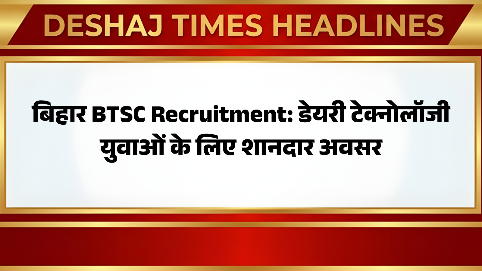 BTSC Recruitment: बिहार में डेयरी टेक्नोलॉजी के क्षेत्र में पढ़ाई कर चुके युवाओं के लिए सरकारी नौकरी का एक सुनहरा अवसर सामने आया है। बिहार तकनीकी सेवा आयोग (BTSC) ने योग्य उम्मीदवारों से आवेदन आमंत्रित किए हैं, जिससे वे अपने करियर को नई दिशा दे सकें। यह भर्ती उन सभी उम्मीदवारों के लिए एक बेहतरीन मौका है जो सरकारी सेवा में अपना स्थान बनाना चाहते हैं, आप पढ़ रहे हैं देशज टाइम्स बिहार का N0.1।