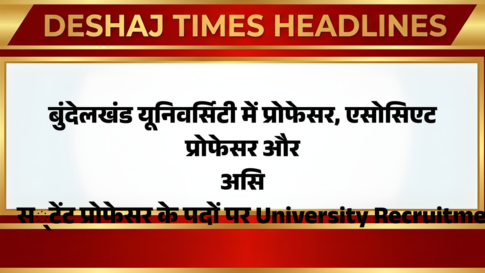 University Recruitment: कॉलेज या यूनिवर्सिटी में प्रोफेसर बनने का सपना देखने वाले युवाओं के लिए बुंदेलखंड विश्वविद्यालय, झांसी ने शानदार अवसर प्रदान किया है। शिक्षण पदों पर भर्ती के लिए विस्तृत अधिसूचना जारी कर दी गई है, जिसके तहत योग्य उम्मीदवार प्रोफेसर, एसोसिएट प्रोफेसर और असिस्टेंट प्रोफेसर के पदों के लिए आवेदन कर सकते हैं। यह उन अभ्यर्थियों के लिए एक सुनहरा मौका है जो उच्च शिक्षा के क्षेत्र में अपना करियर बनाना चाहते हैं।