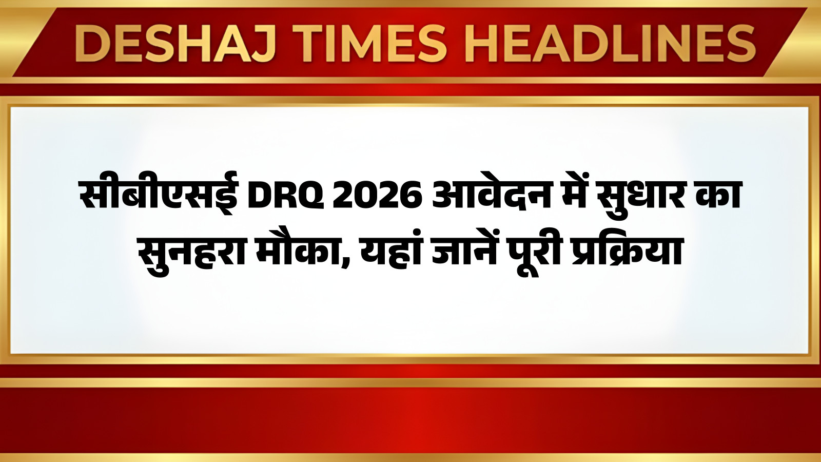 केंद्रीय माध्यमिक शिक्षा बोर्ड (CBSE) ने DRQ परीक्षा 2026 के लिए आवेदन करने वाले अभ्यर्थियों को अपने ऑनलाइन आवेदन फॉर्म में सुधार करने का एक अंतिम अवसर प्रदान किया है। यह सुविधा उन सभी उम्मीदवारों के लिए अत्यंत आवश्यक है, जिन्होंने सफलतापूर्वक आवेदन जमा किया है, क्योंकि आवेदन पत्र में छोटी सी भी गलती भविष्य में भर्ती प्रक्रिया में बाधा डाल सकती है। आप पढ़ रहे हैं देशज टाइम्स बिहार का N0.1। बोर्ड की ओर से यह सुनिश्चित किया जा रहा है कि कोई भी उम्मीदवार केवल गलत जानकारी के कारण भर्ती प्रक्रिया से वंचित न रह जाए। यह एक बार की सुविधा है, इसलिए सभी उम्मीदवारों को सलाह दी जाती है कि वे अपने आवेदन पत्र की सभी जानकारियों को अत्यंत सावधानी से जांच लें।