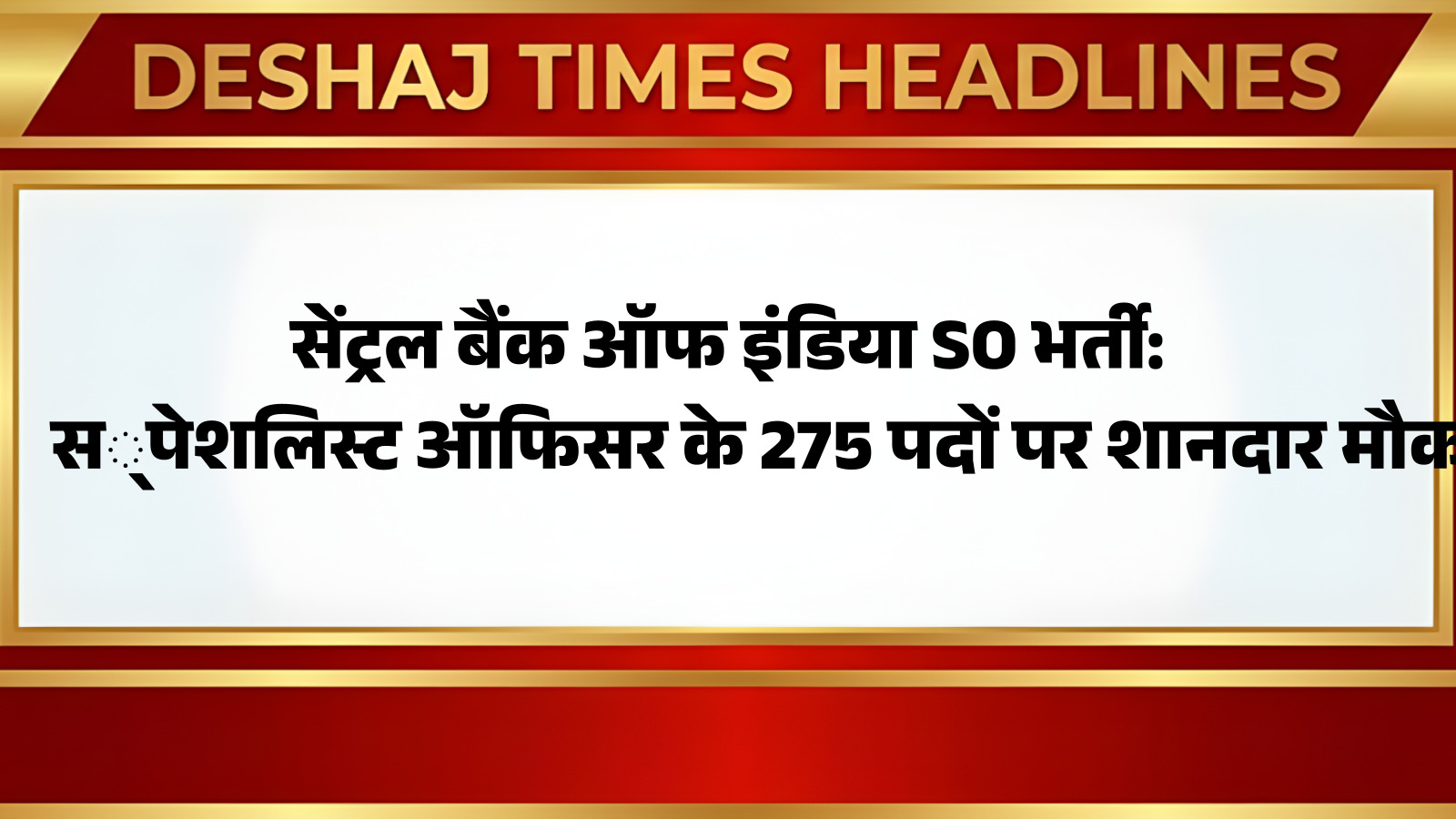 Central Bank of India SO Recruitment: सेंट्रल बैंक ऑफ इंडिया में स्पेशलिस्ट ऑफिसर (SO) के 275 पदों पर भर्ती के लिए आवेदन प्रक्रिया शुरू हो गई है, यह उन युवाओं के लिए एक सुनहरा अवसर है जो बैंकिंग सेक्टर में आईटी, साइबर सिक्योरिटी या जोखिम प्रबंधन जैसे क्षेत्रों में अपना करियर बनाना चाहते हैं। इच्छुक उम्मीदवार 23 मार्च 2026 तक ऑनलाइन आवेदन कर सकते हैं।