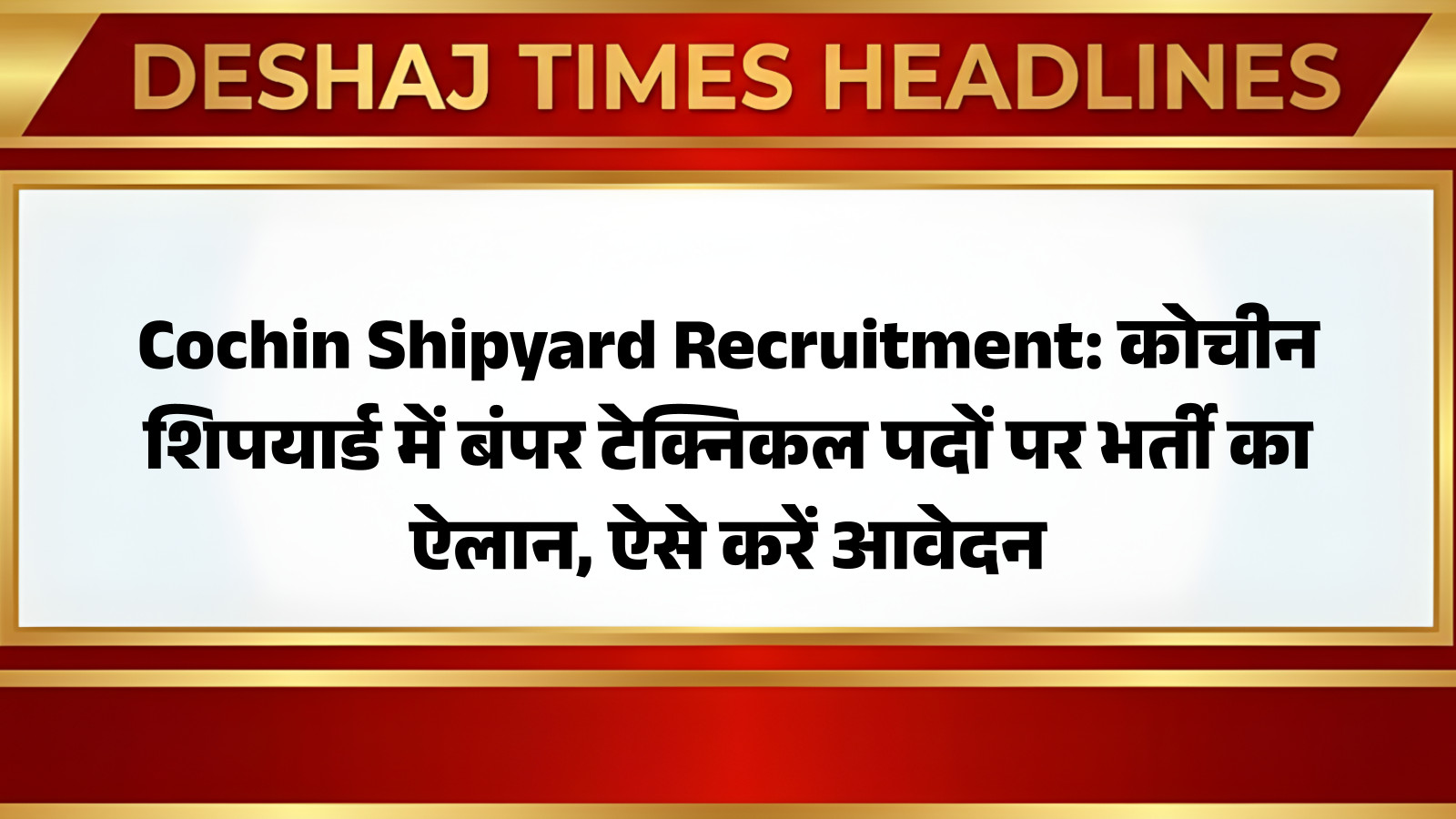 Cochin Shipyard Recruitment: कोचीन शिपयार्ड में बंपर टेक्निकल पदों पर भर्ती का ऐलान, ऐसे करें आवेदन