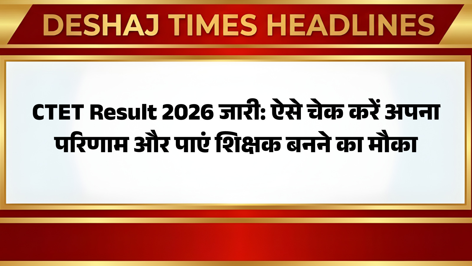 CTET Result: केंद्रीय शिक्षक पात्रता परीक्षा (CTET) 2026 में शामिल हुए लाखों उम्मीदवारों का इंतजार आखिरकार समाप्त हो गया है। केंद्रीय माध्यमिक शिक्षा बोर्ड (CBSE) ने CTET 2026 का परिणाम अपनी आधिकारिक वेबसाइट पर जारी कर दिया है, जिससे अब अभ्यर्थी आसानी से अपना नतीजा देख सकते हैं। यह उन सभी अभ्यर्थियों के लिए एक महत्वपूर्ण क्षण है जो देश के विभिन्न सरकारी स्कूलों में शिक्षक बनने का सपना देख रहे हैं।