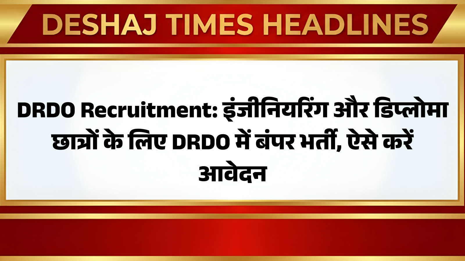 # DRDO Recruitment: इंजीनियरिंग और डिप्लोमा छात्रों के लिए DRDO में बंपर भर्ती, ऐसे करें आवेदन