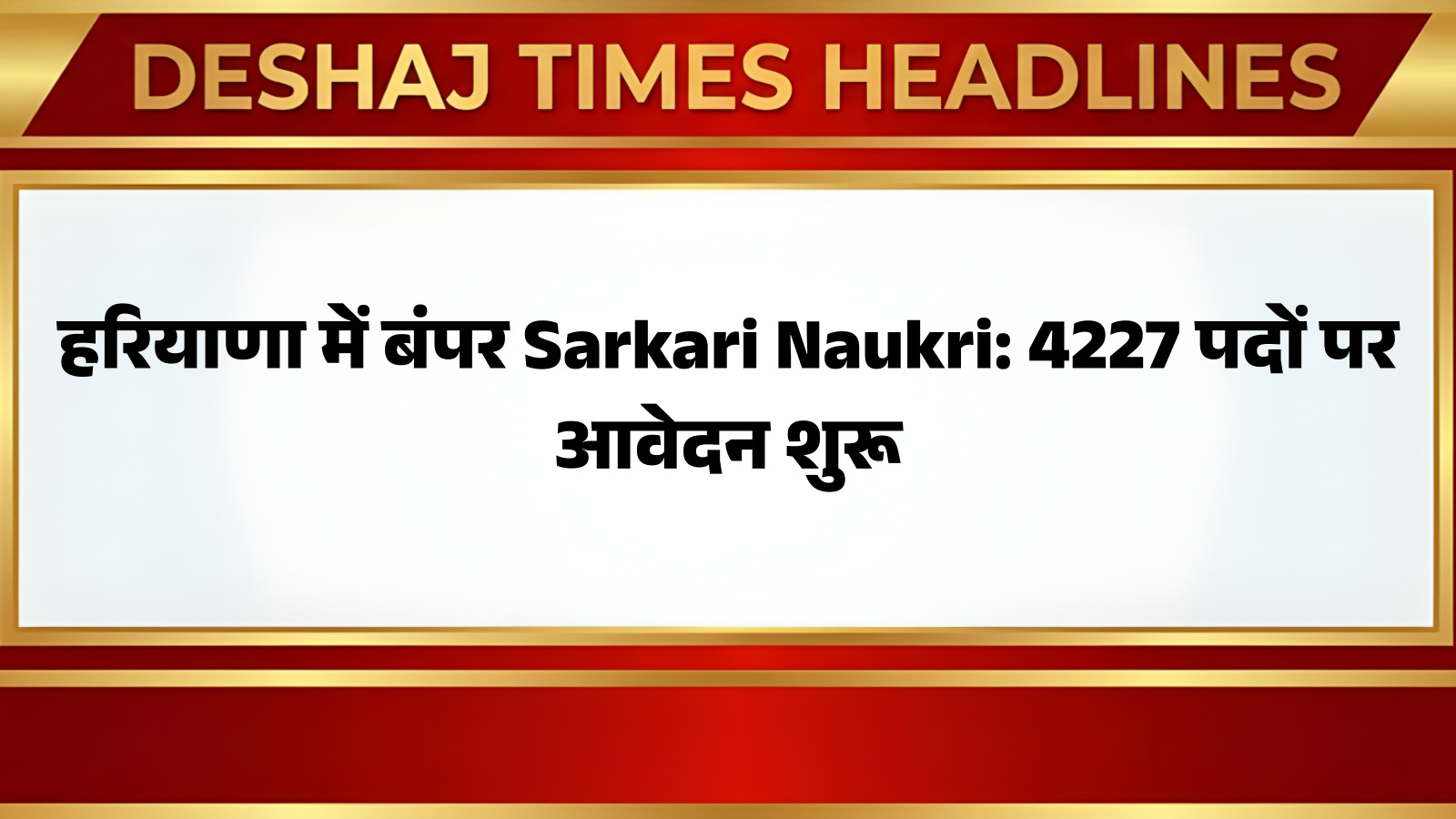 Sarkari Naukri: हरियाणा में सरकारी नौकरी की तलाश कर रहे युवाओं के लिए एक सुनहरा अवसर सामने आया है। राज्य सरकार ने विभिन्न विभागों में कुल 4227 पदों पर भर्ती के लिए आवेदन प्रक्रिया शुरू कर दी है। यह भर्ती अभियान विभिन्न पदों जैसे क्लर्क, स्टेनोग्राफर, सहायक और अन्य रिक्तियों को भरने के लिए चलाया जा रहा है। इच्छुक और योग्य उम्मीदवार आधिकारिक वेबसाइट के माध्यम से इन पदों के लिए ऑनलाइन आवेदन कर सकते हैं। यह आपके करियर को एक नई दिशा देने का बेहतरीन मौका है।