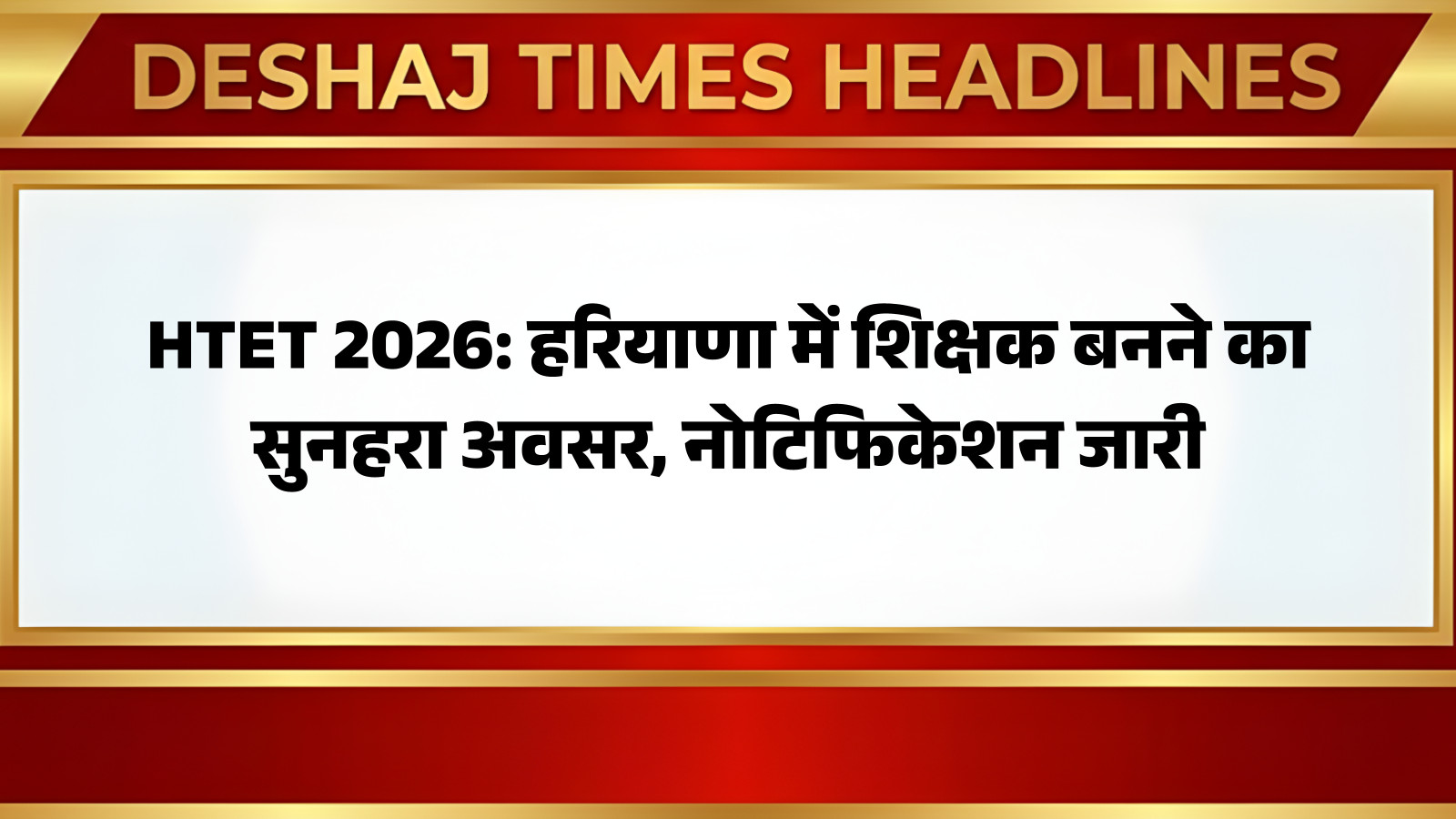 HTET 2026: हरियाणा में शिक्षक बनने का सपना देख रहे युवाओं के लिए एक सुनहरा अवसर सामने आया है। बोर्ड ऑफ स्कूल एजुकेशन हरियाणा (BSEH) ने हरियाणा शिक्षक पात्रता परीक्षा (HTET) 2026 के लिए विस्तृत नोटिफिकेशन जारी कर दिया है, जिससे पात्र उम्मीदवार अब अपनी तैयारी शुरू कर सकते हैं और इस परीक्षा के माध्यम से अपने शिक्षक बनने के सपने को साकार कर सकते हैं।
