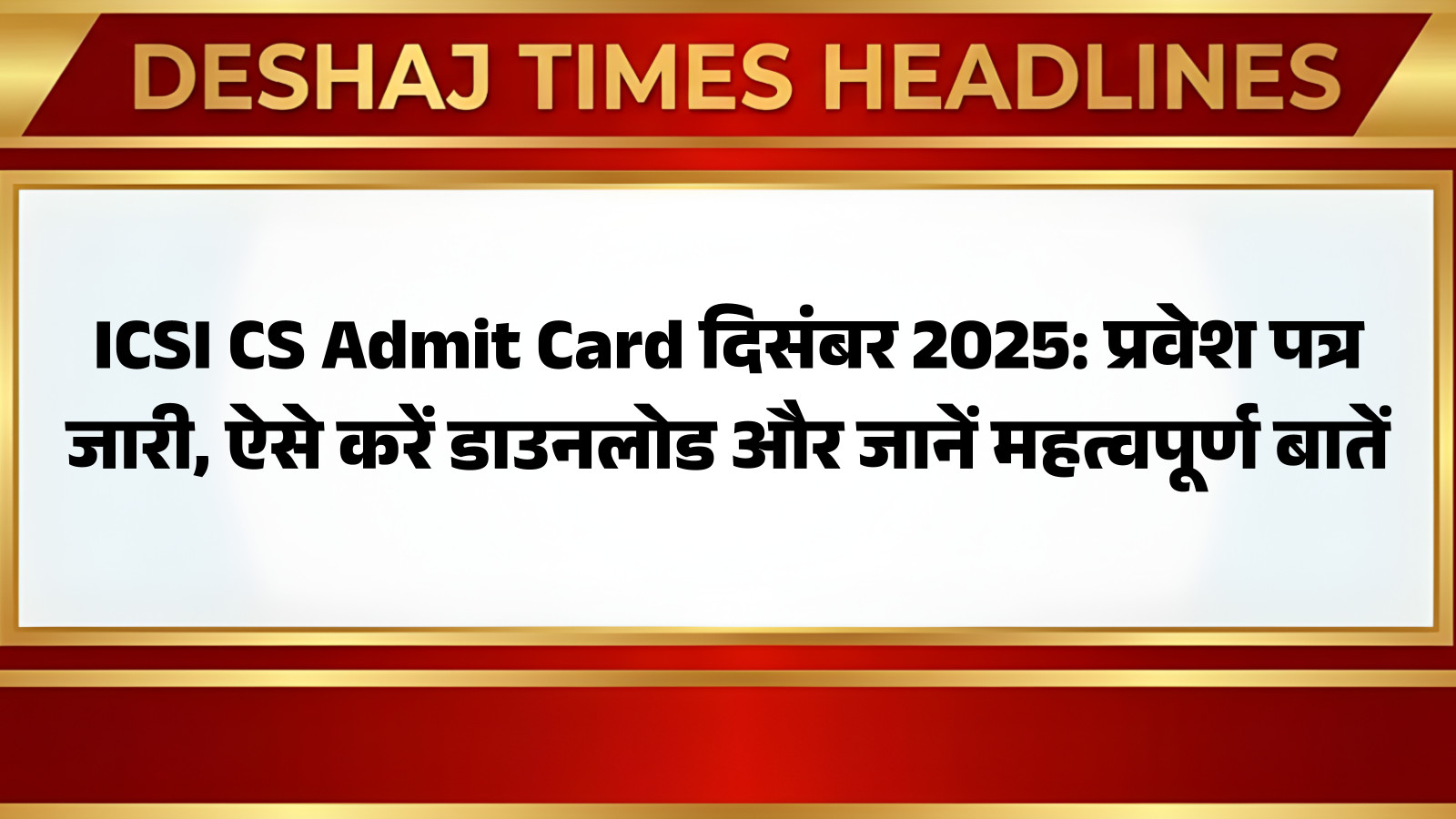 CS Admit Card: इंस्टीट्यूट ऑफ कंपनी सेक्रेटरीज ऑफ इंडिया (ICSI) ने दिसंबर 2025 की कंपनी सेक्रेटरी (CS) परीक्षा में शामिल होने वाले लाखों छात्रों का इंतजार खत्म कर दिया है। संस्था ने एग्जीक्यूटिव और प्रोफेशनल दोनों कार्यक्रमों के लिए प्रवेश पत्र जारी कर दिए हैं। अब सभी उम्मीदवार ICSI की आधिकारिक वेबसाइट icsi.edu पर जाकर अपना प्रवेश पत्र आसानी से डाउनलोड कर सकते हैं।