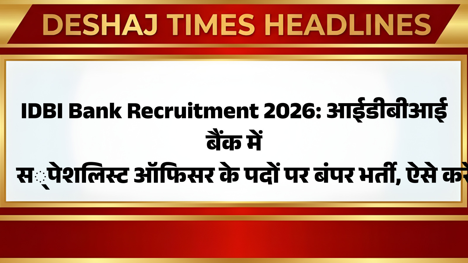 IDBI Bank Recruitment 2026: आईडीबीआई बैंक में स्पेशलिस्ट ऑफिसर के पदों पर बंपर भर्ती, ऐसे करें आवेदन